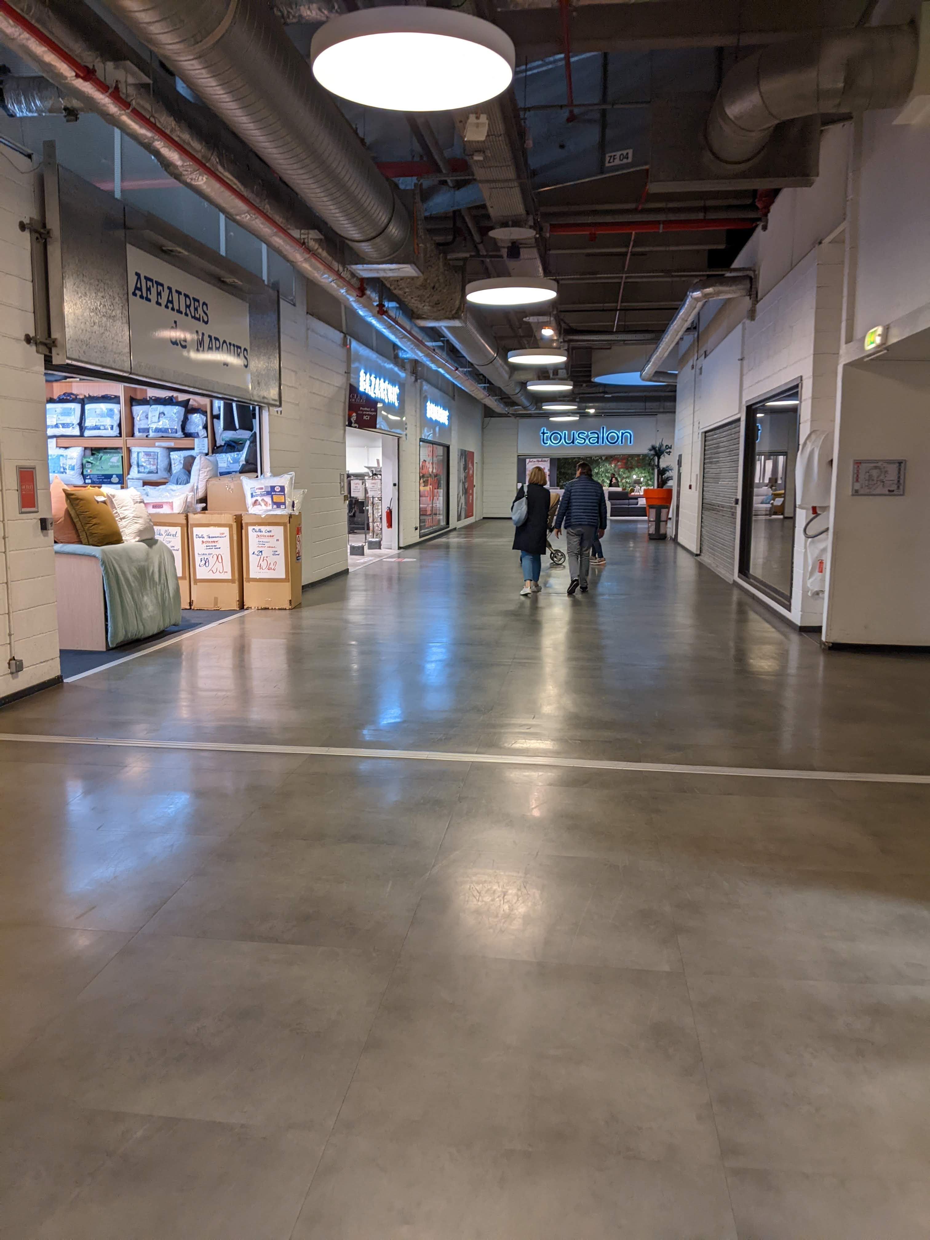 L’ombre d’un centre commercial si l’on peut encore lui donner un tel nom. Au niveau 0, quelques magasins de meubles ainsi que de linge de maison. Niveau 1, des cellules vides qui attendent désespérément preneurs au bout d’allées de circulation interminables. Même Action ouvert récemment n’est que l’ombre de lui-même, l’offre y est médiocre, sans intérêt en comparaison de Thiais ou de Plaisir où la clientèle y est plus populaire. Passez votre chemin…