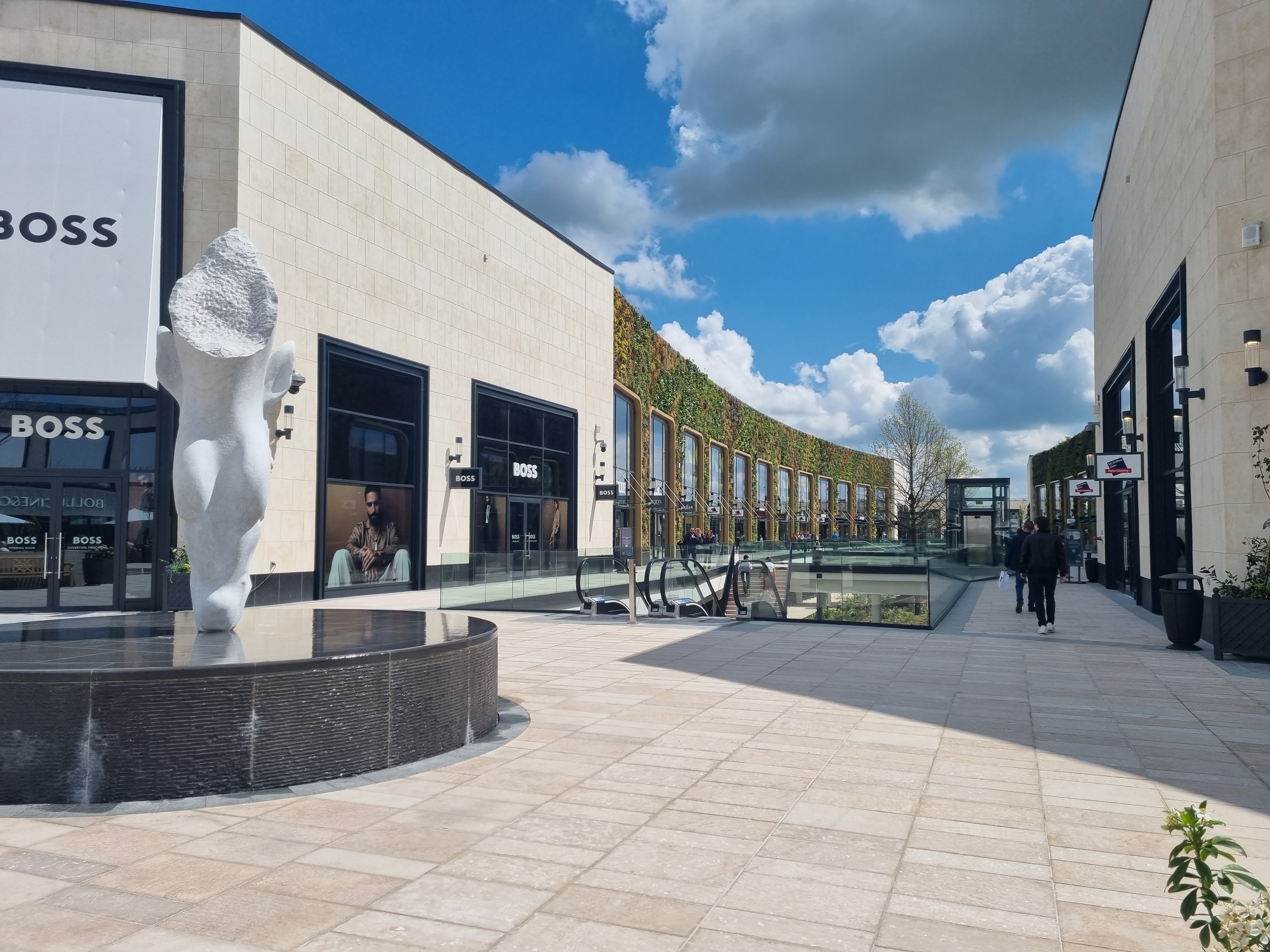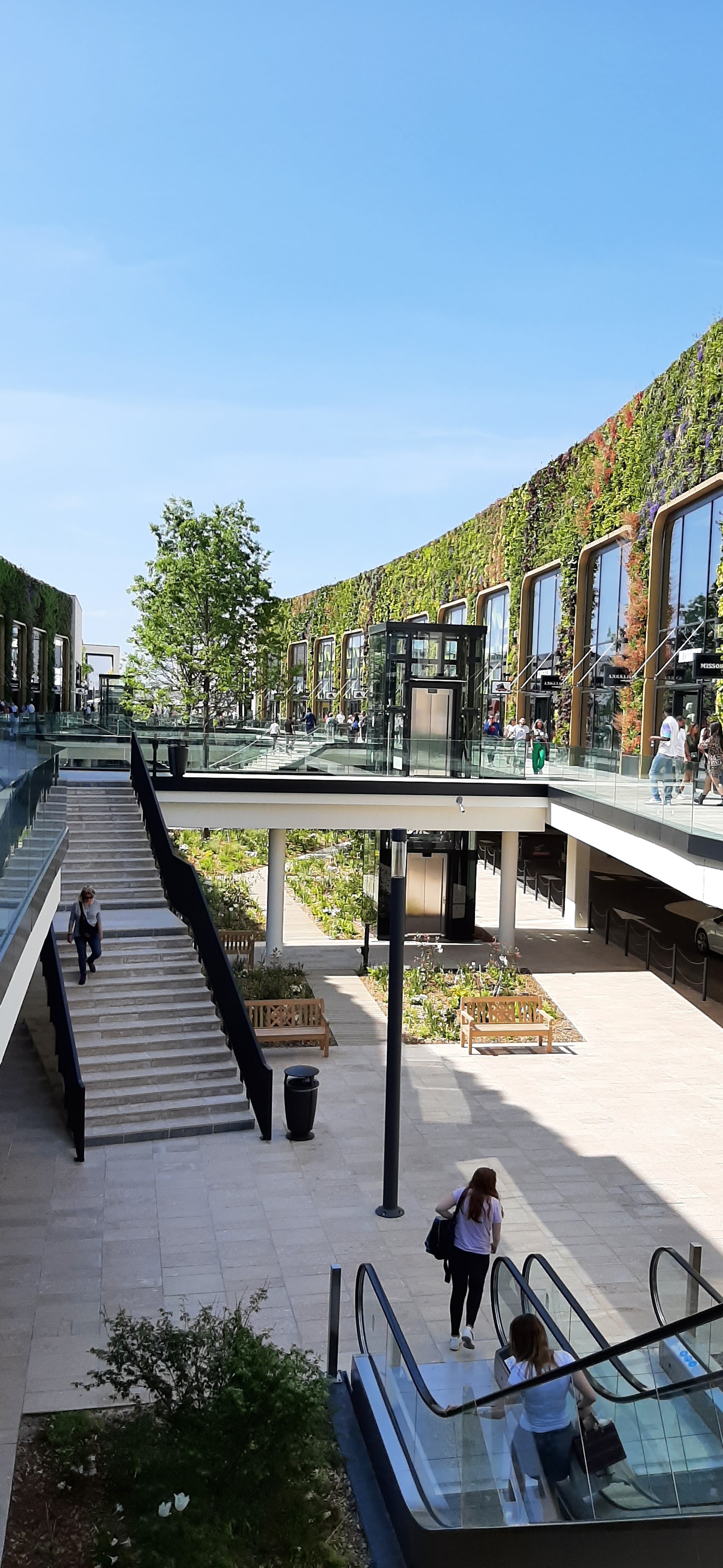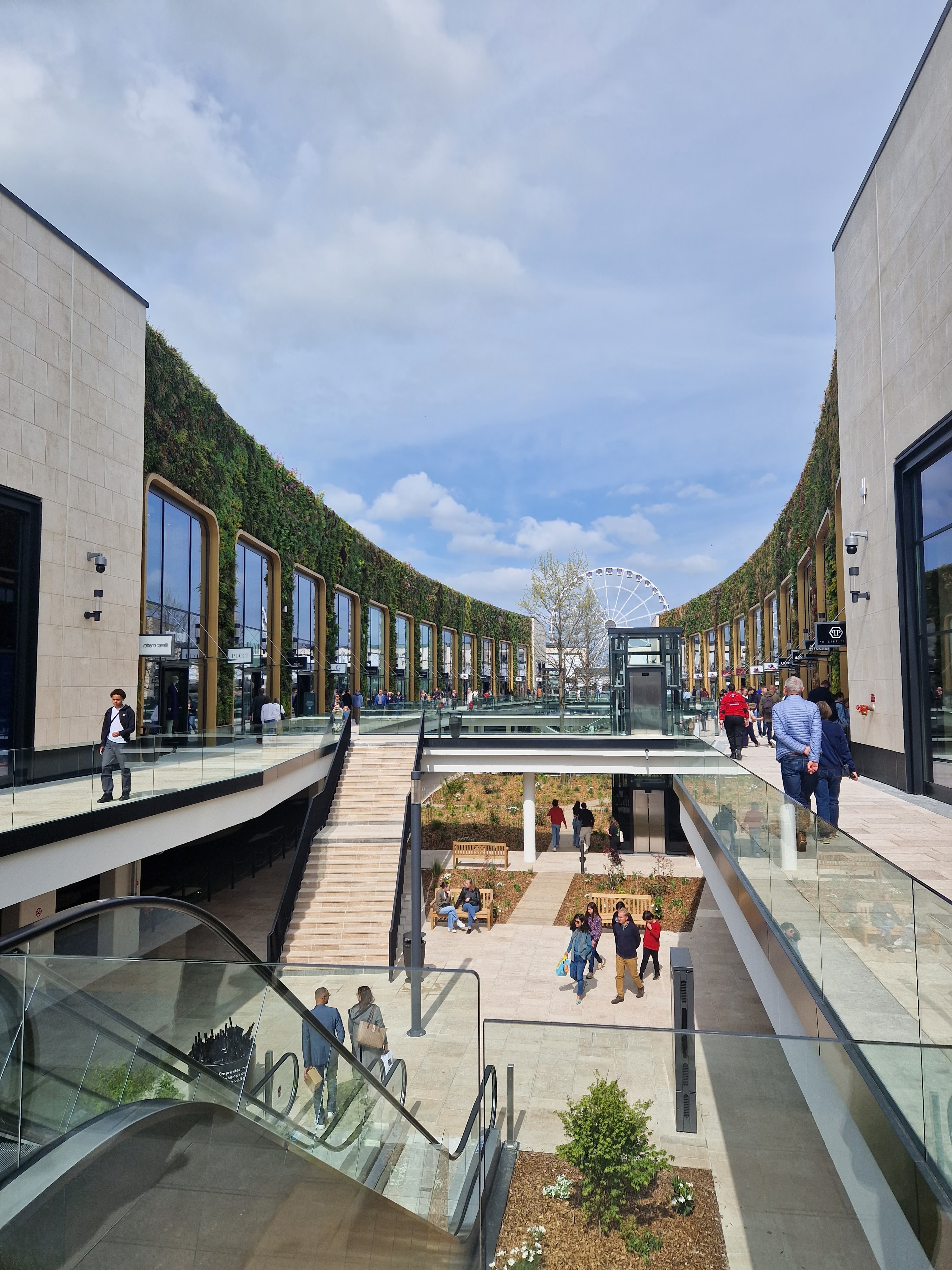 1ère visite ce jour en milieu d’après midi, j’ai un avis plutôt mitigé. L’accès au parking à l’arrivée et à la sortie s’est fait sans problème, c’était très fluide, l’accès aux boutiques depuis le parking: très bien conçu, en revanche, au niveau de l’architecture vu de l’extérieur c’est affreux, froid, mais c’est une jolie surprise sur l’intérieur, je trouve que c’est superbe : les murs végétalisés, les sculptures, un peu de plantation partout. Concernant les enseignes, il y a de quoi satisfaire tout le monde, mais selon moi ce n’est pas « outlet », voir pas du tout.