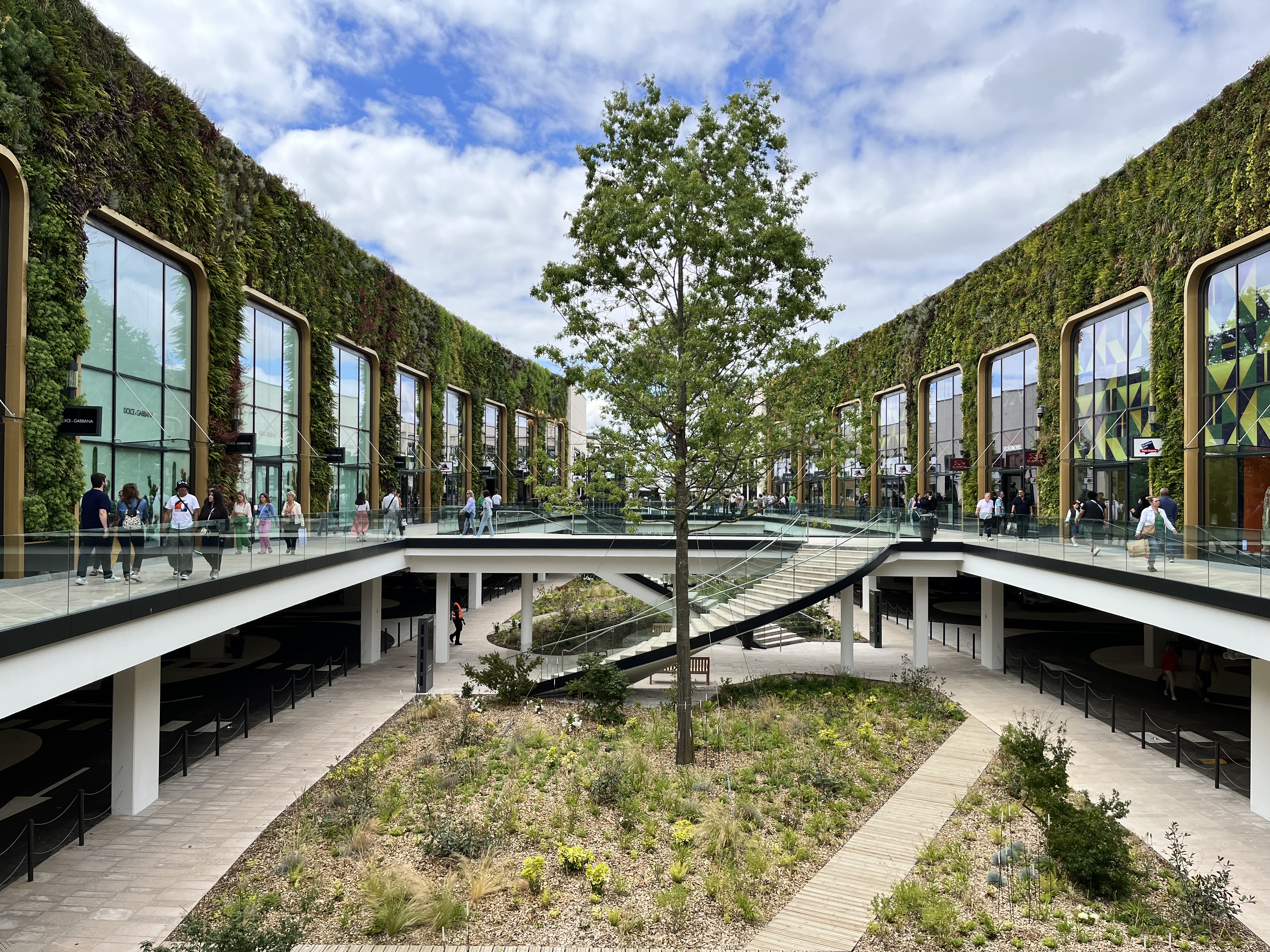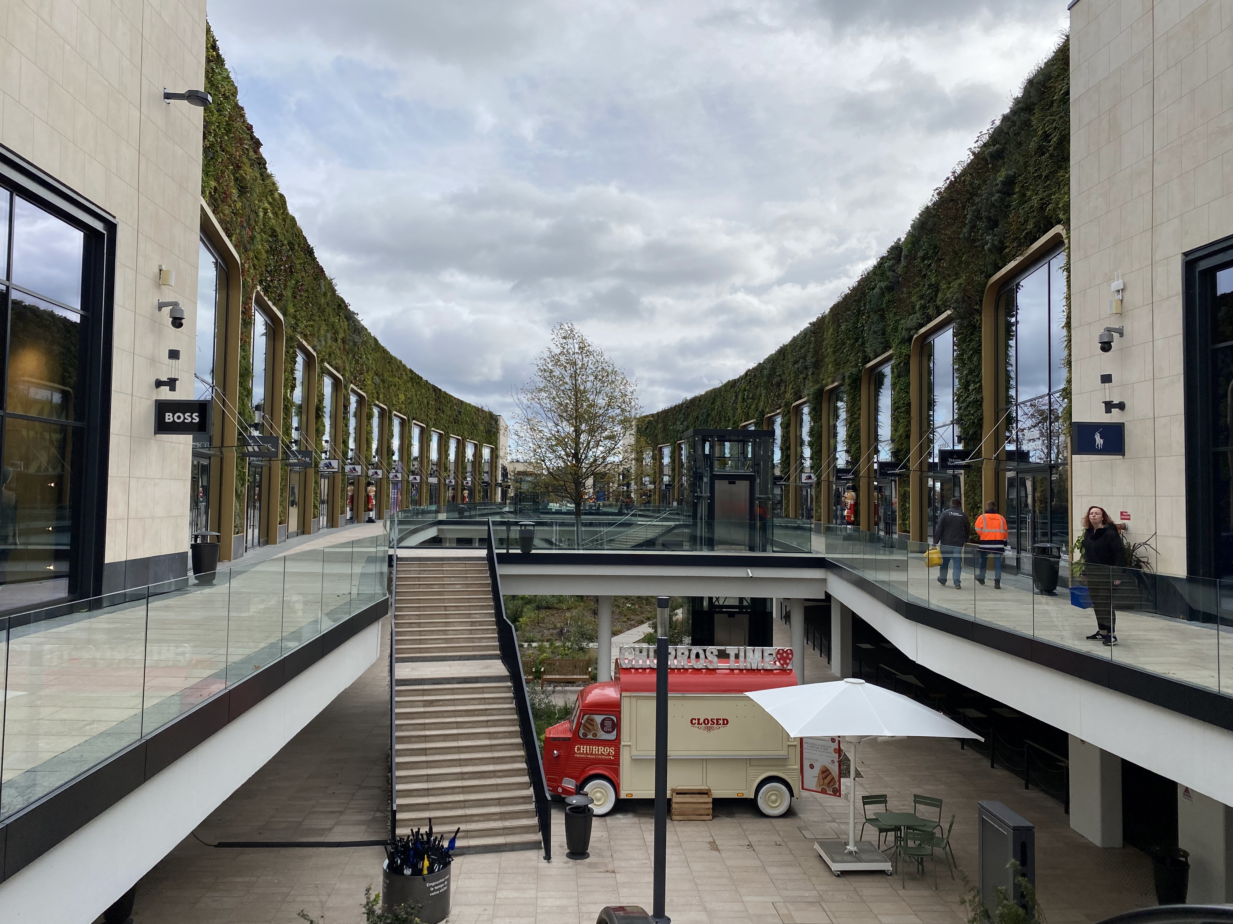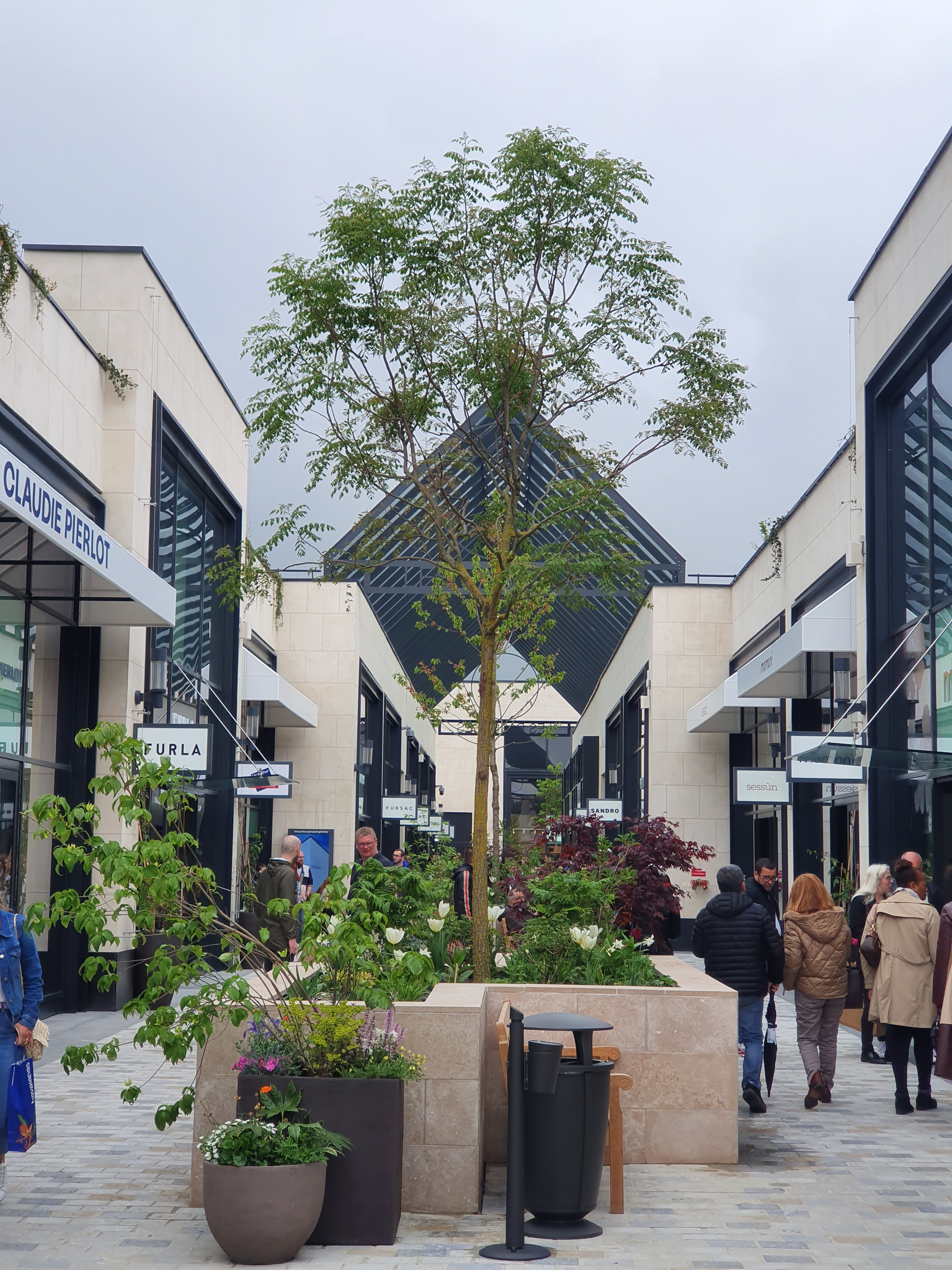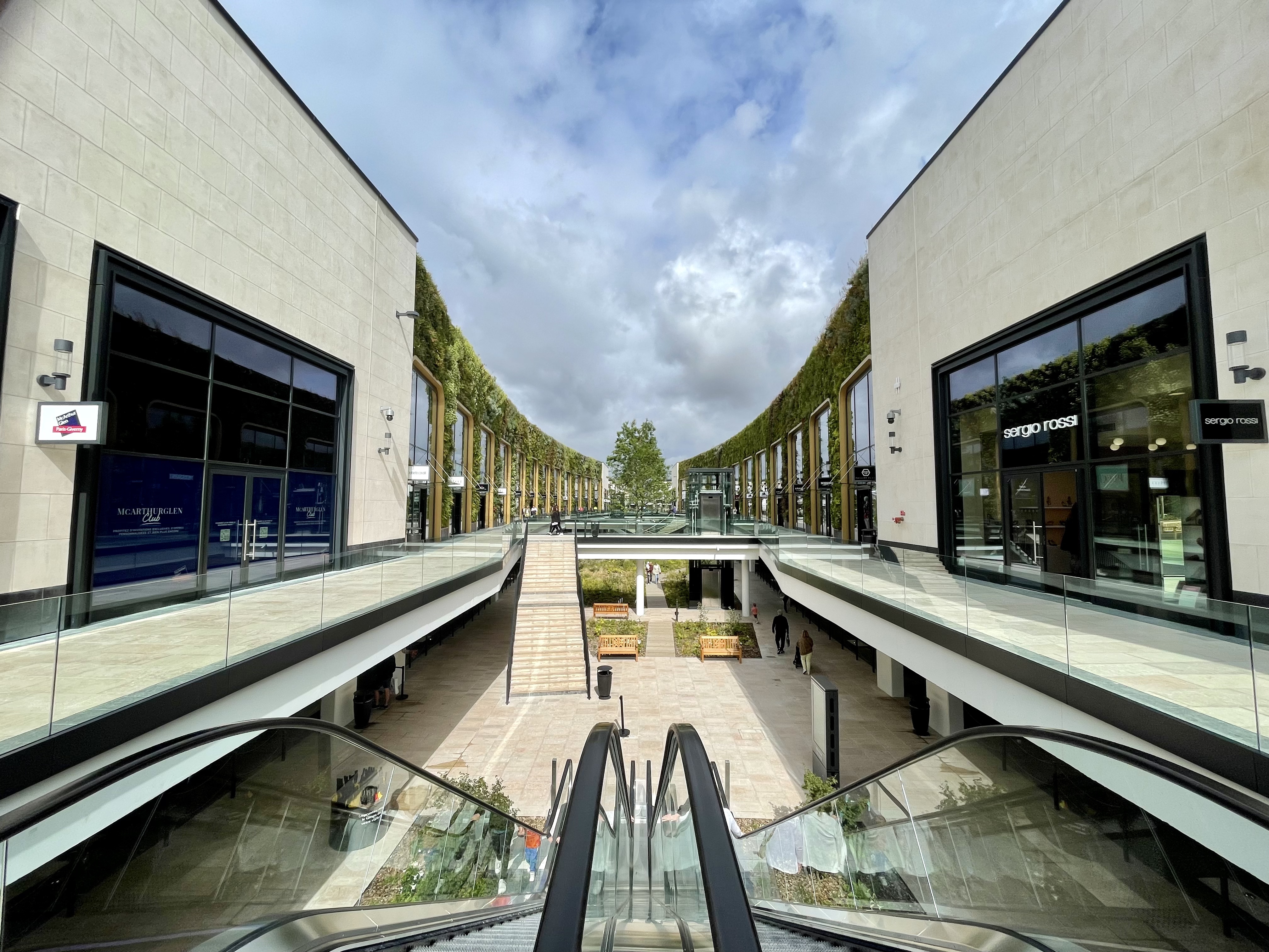 1ère visite ce jour en milieu d’après midi, j’ai un avis plutôt mitigé. L’accès au parking à l’arrivée et à la sortie s’est fait sans problème, c’était très fluide, l’accès aux boutiques depuis le parking: très bien conçu, en revanche, au niveau de l’architecture vu de l’extérieur c’est affreux, froid, mais c’est une jolie surprise sur l’intérieur, je trouve que c’est superbe : les murs végétalisés, les sculptures, un peu de plantation partout. Concernant les enseignes, il y a de quoi satisfaire tout le monde, mais selon moi ce n’est pas « outlet », voir pas du tout.