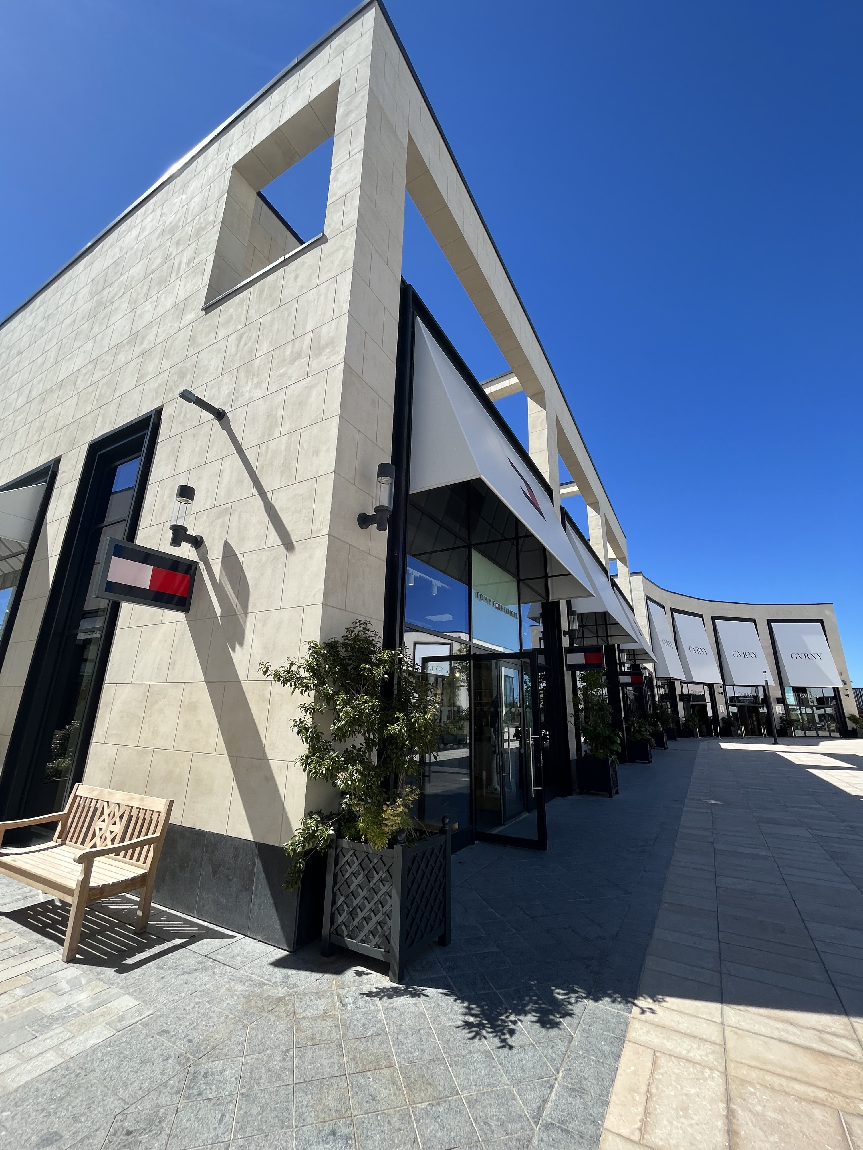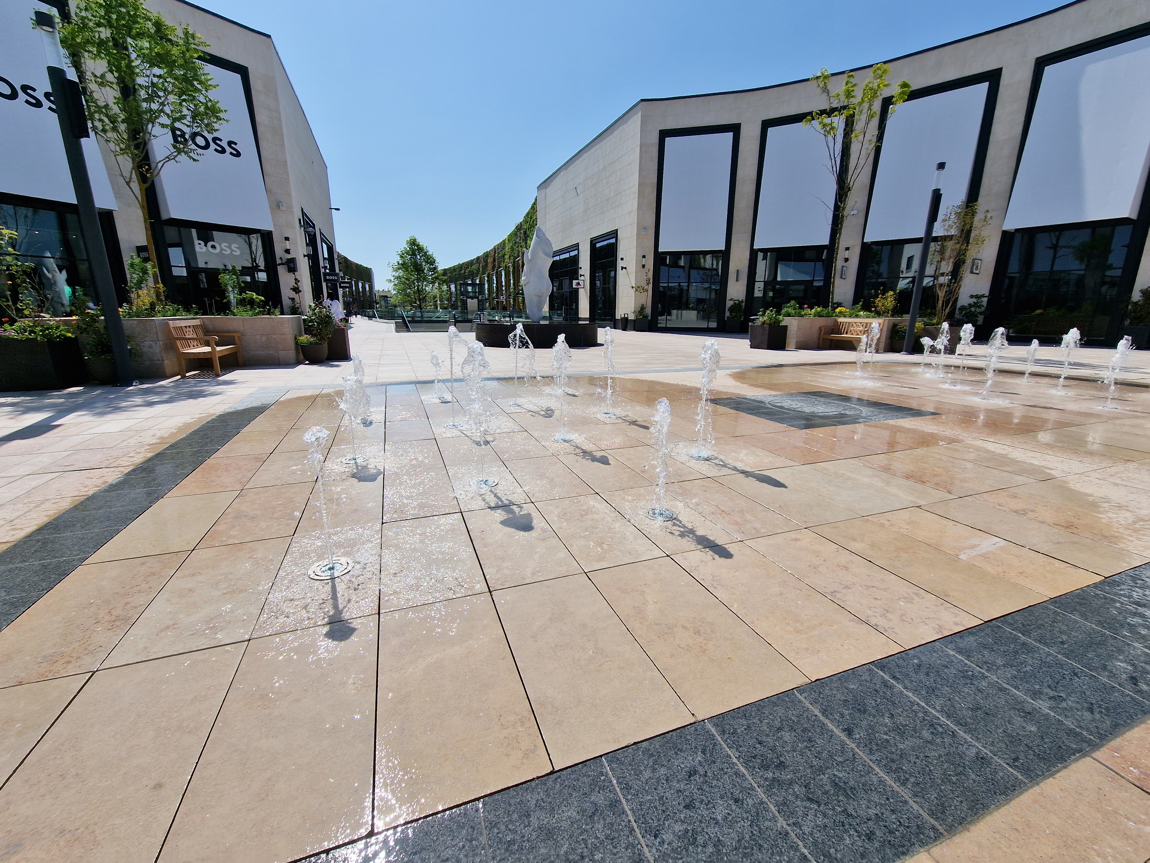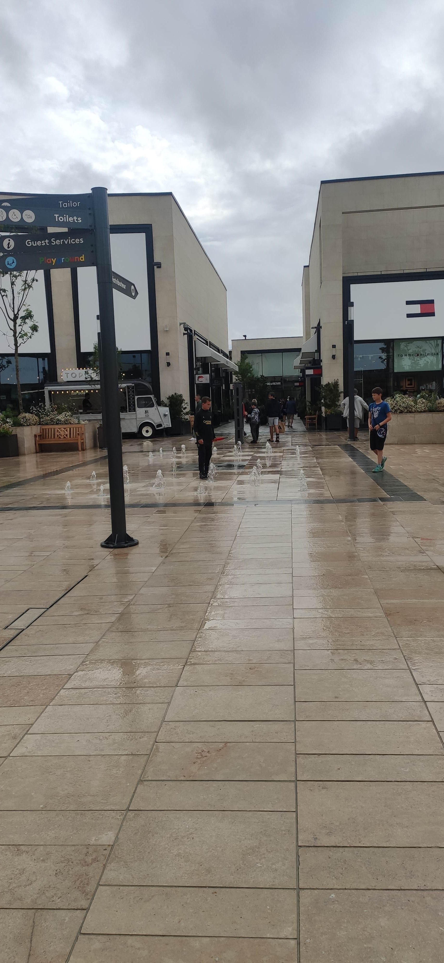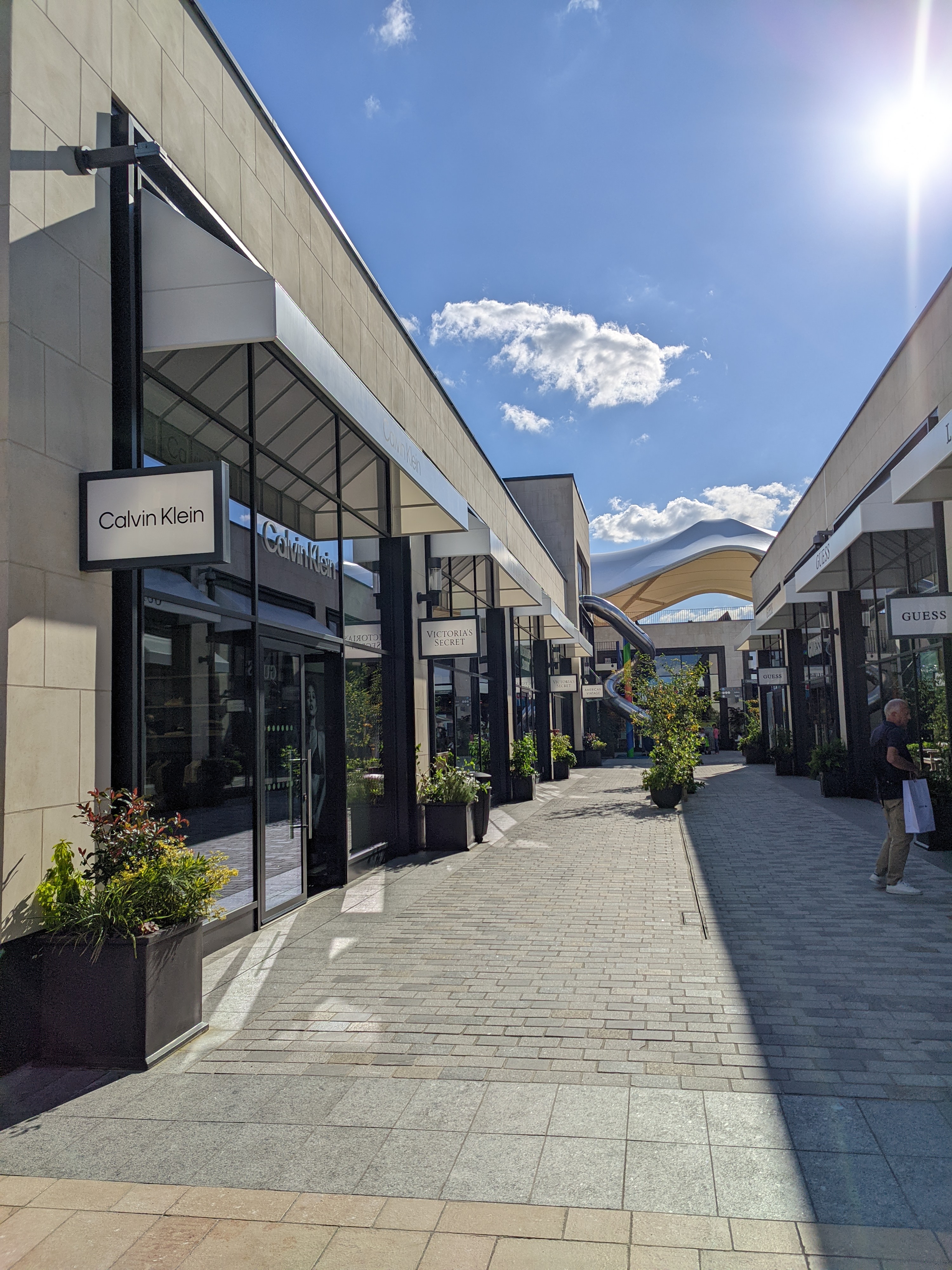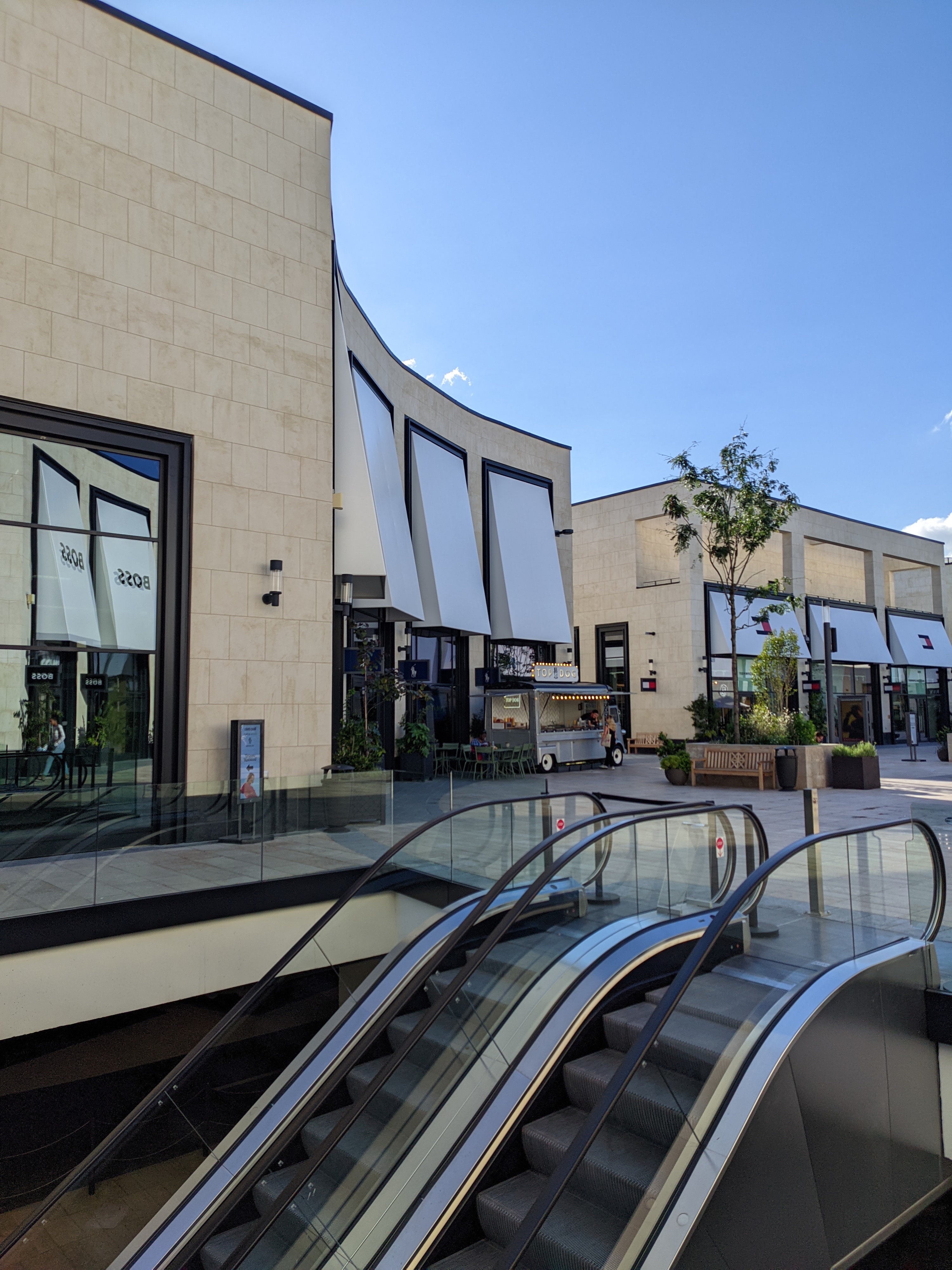 Le centre commercial est agréable esthétiquement mais pas du tout quand il pleut car c’est un open Sky.. les boutiques sont les mêmes que l’on peut trouver partout et les remises bien trop faibles.. autrement dit rien d’extraordinaire c’est un centre commercial parmi tant d’autres..