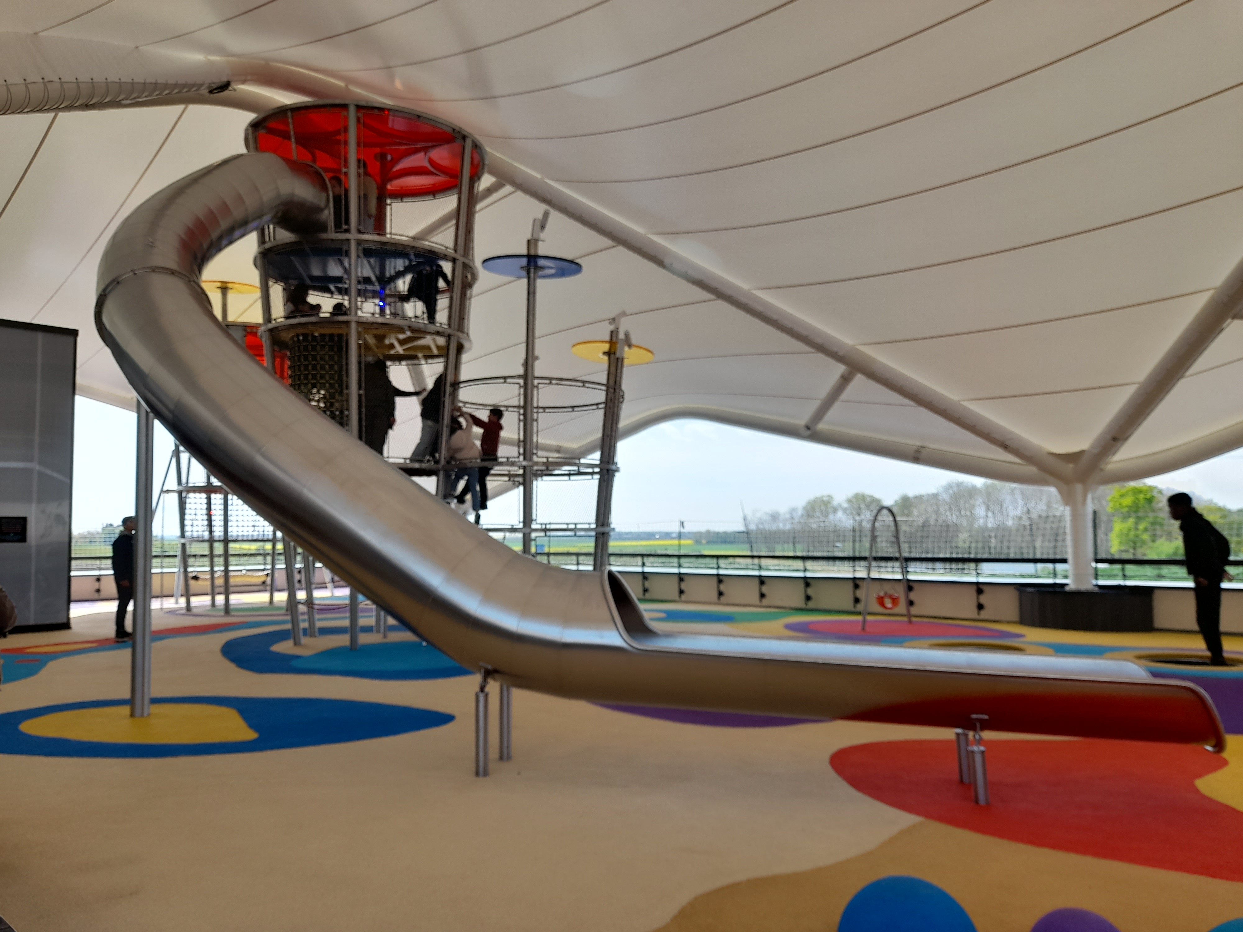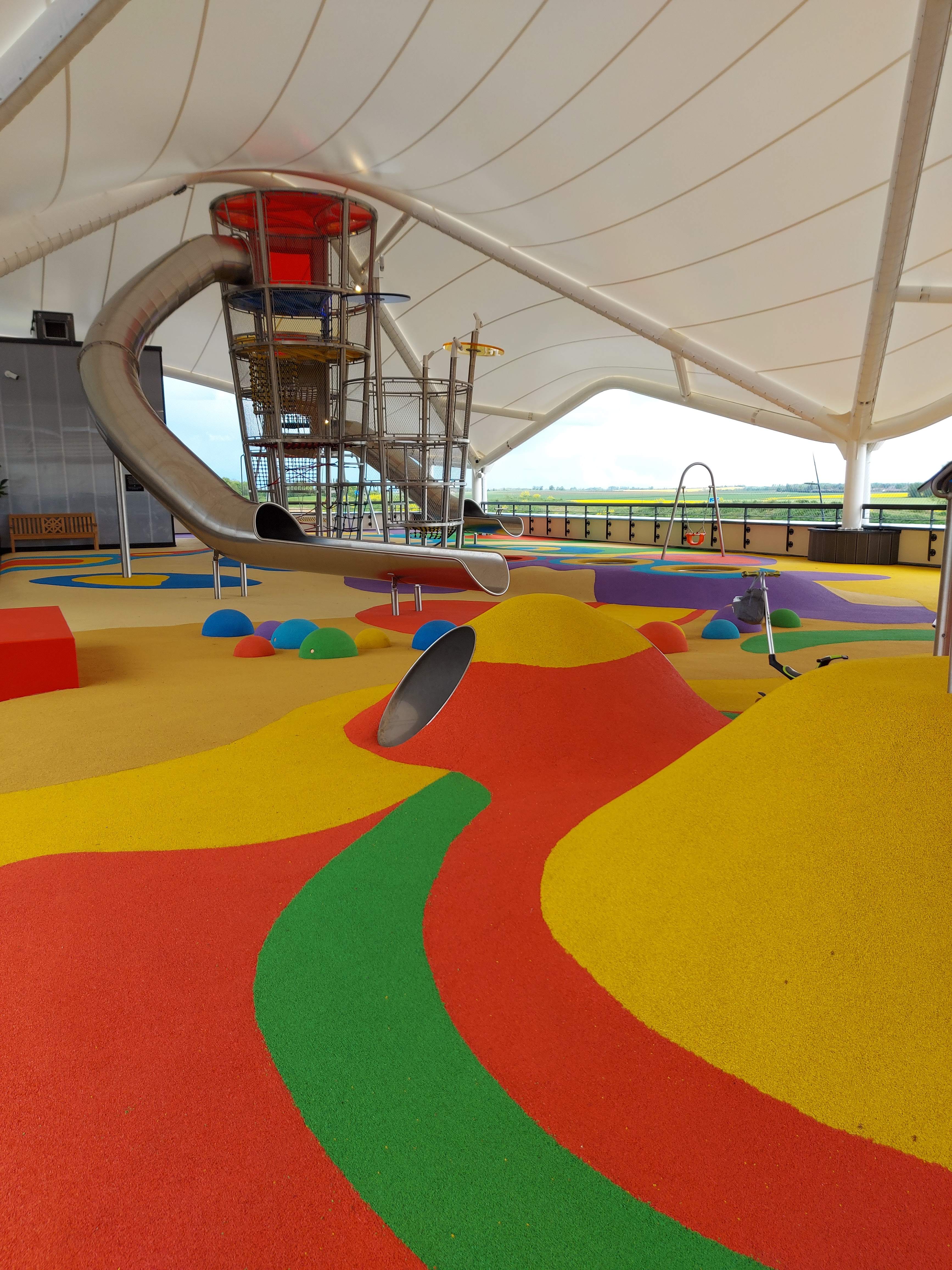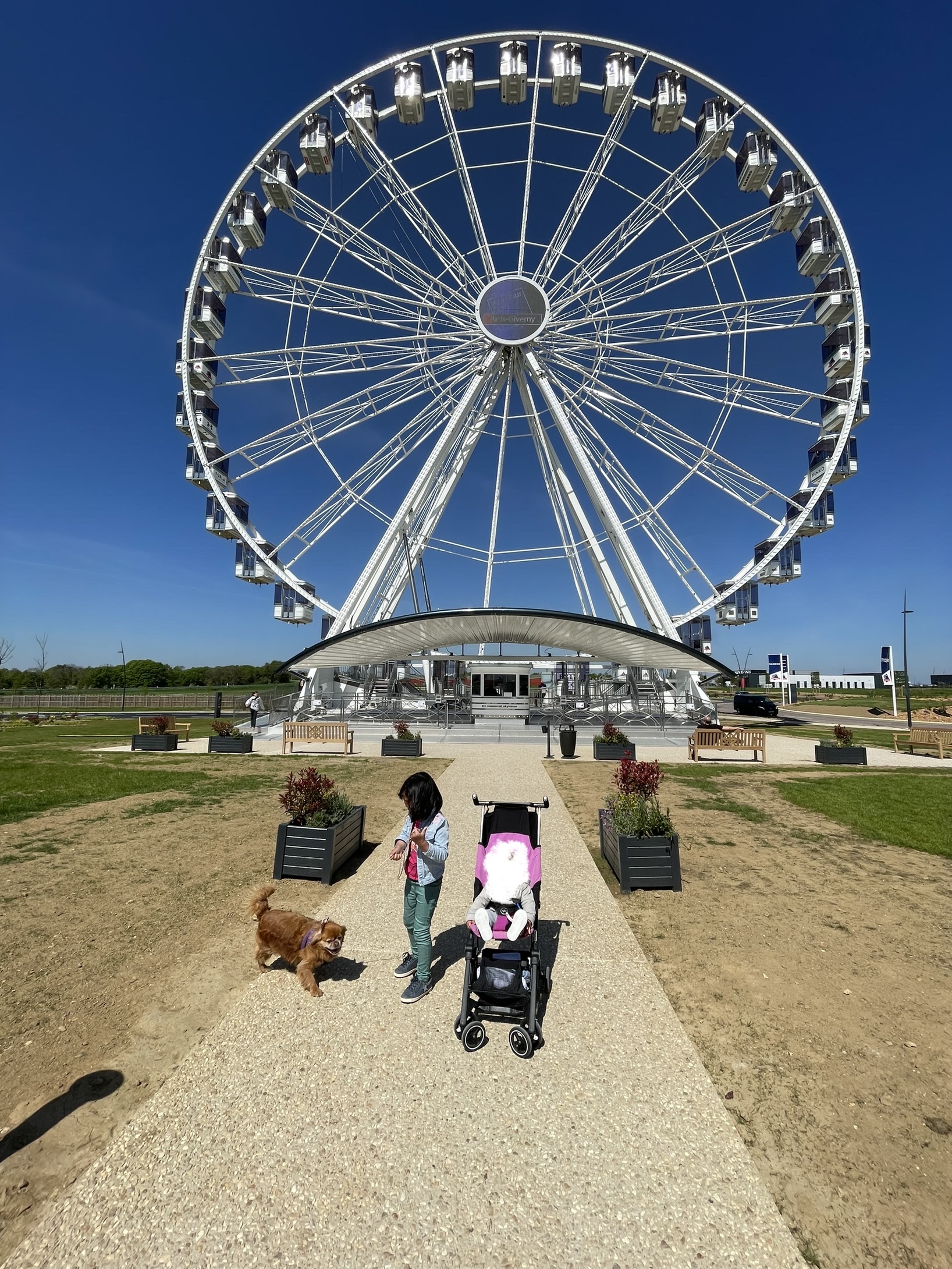 Beau centre commercial, de jolies boutiques. C’est tout neuf donc propre. Raison de notre visite: la grande roue 🎡 On est parti trop vite car rien de prévu sur place pour des visiteurs avec chien.