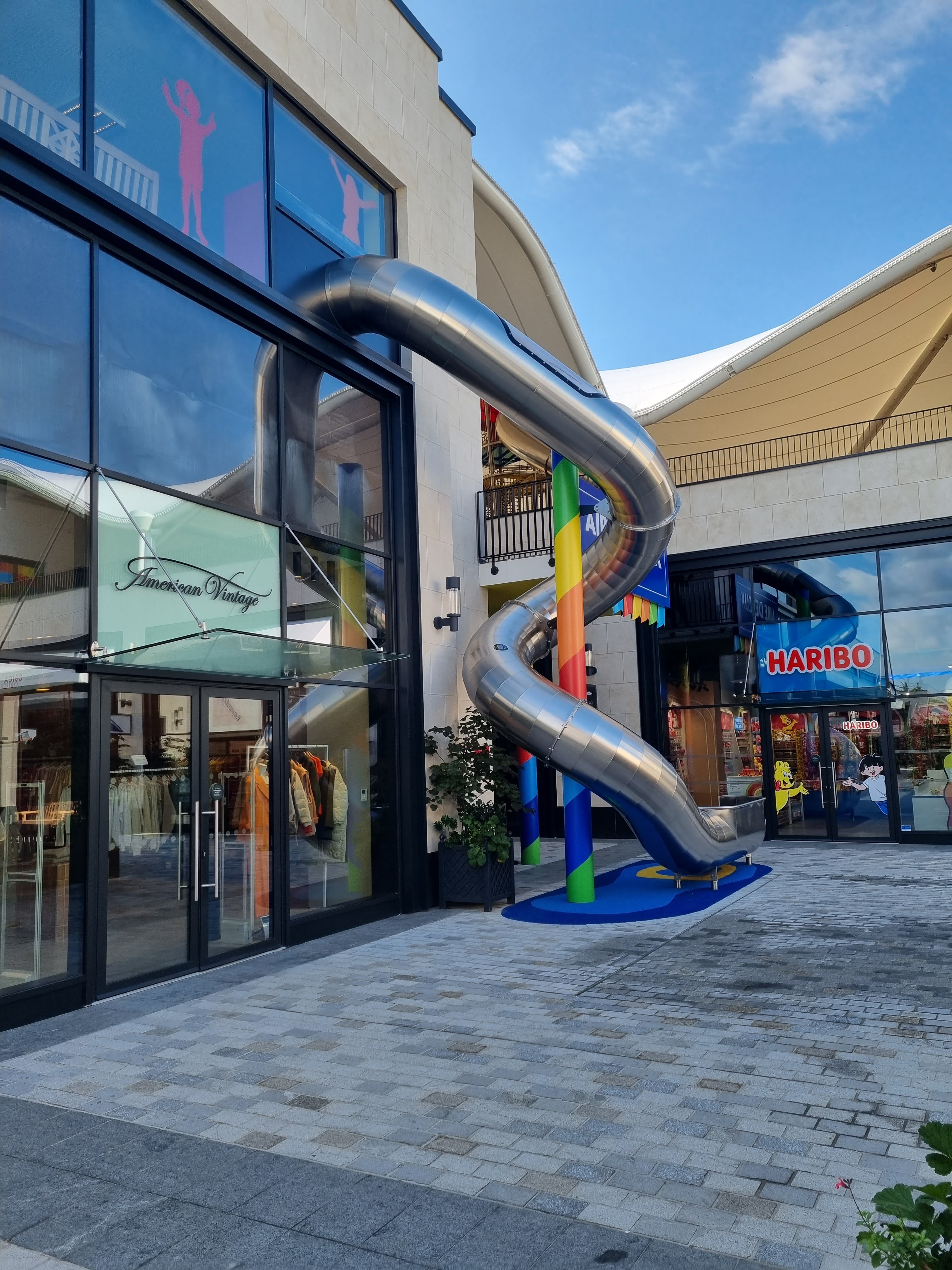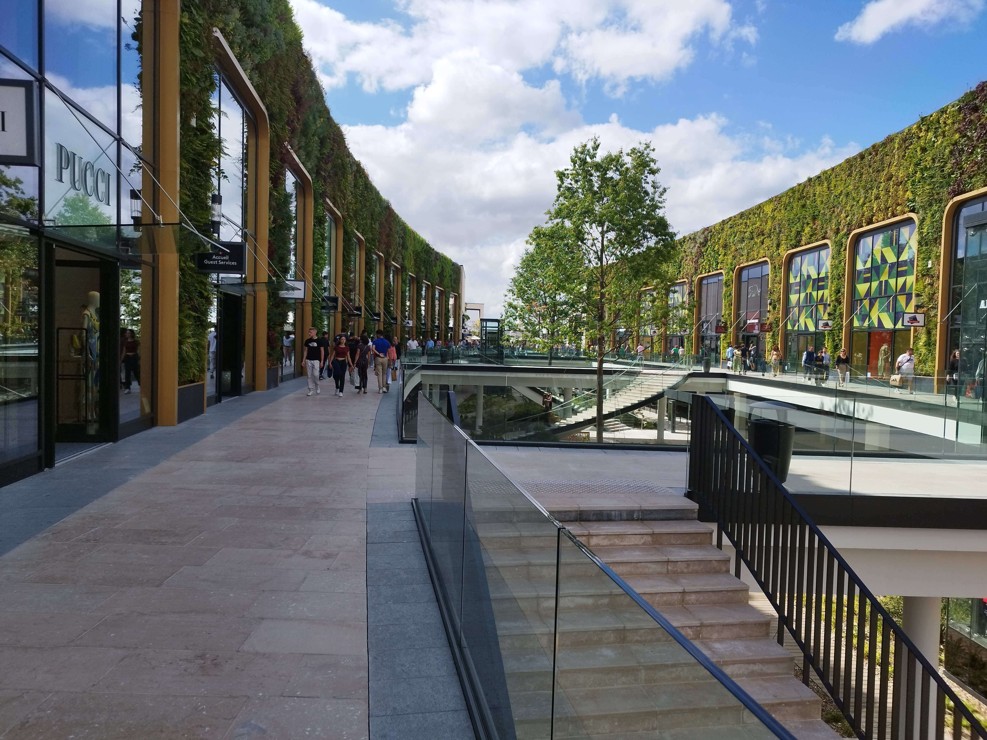 Une incroyable experience shopping et gourmande vous attend. Le lieu est magnifique. C'est spacieux, élégant et chic. Il y a des boutiques de luxe (coach, dolce gabbana, Karl Lagerfeld...), des boutiques de sport (Nike, Adidas, Puma...), des boutique beauté (L'Oréal et Rituals), mode (Aigle, Sandro, Stella Mc Cartney...), et de quoi se restaurer (Five Guys, Amorino...) C'est adapté aux personnes handicapées. Il y a une zone de jeux pour les enfants, juste à côté d'Haribo.