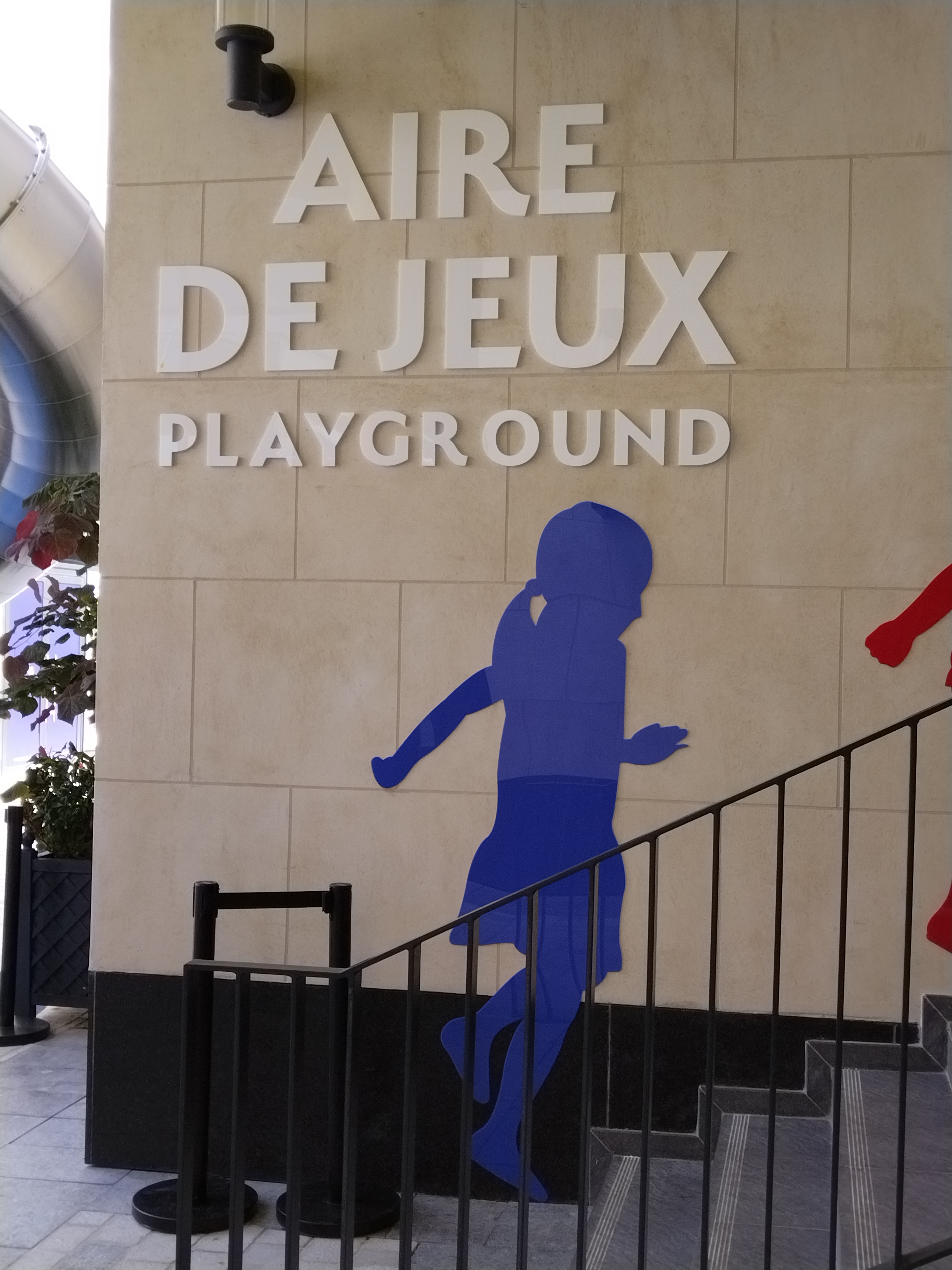 Des aires de jeux enfants un énorme parking des parapluies à disposition des ascenseur des Escalators et de nombreuses boutiques de luxe