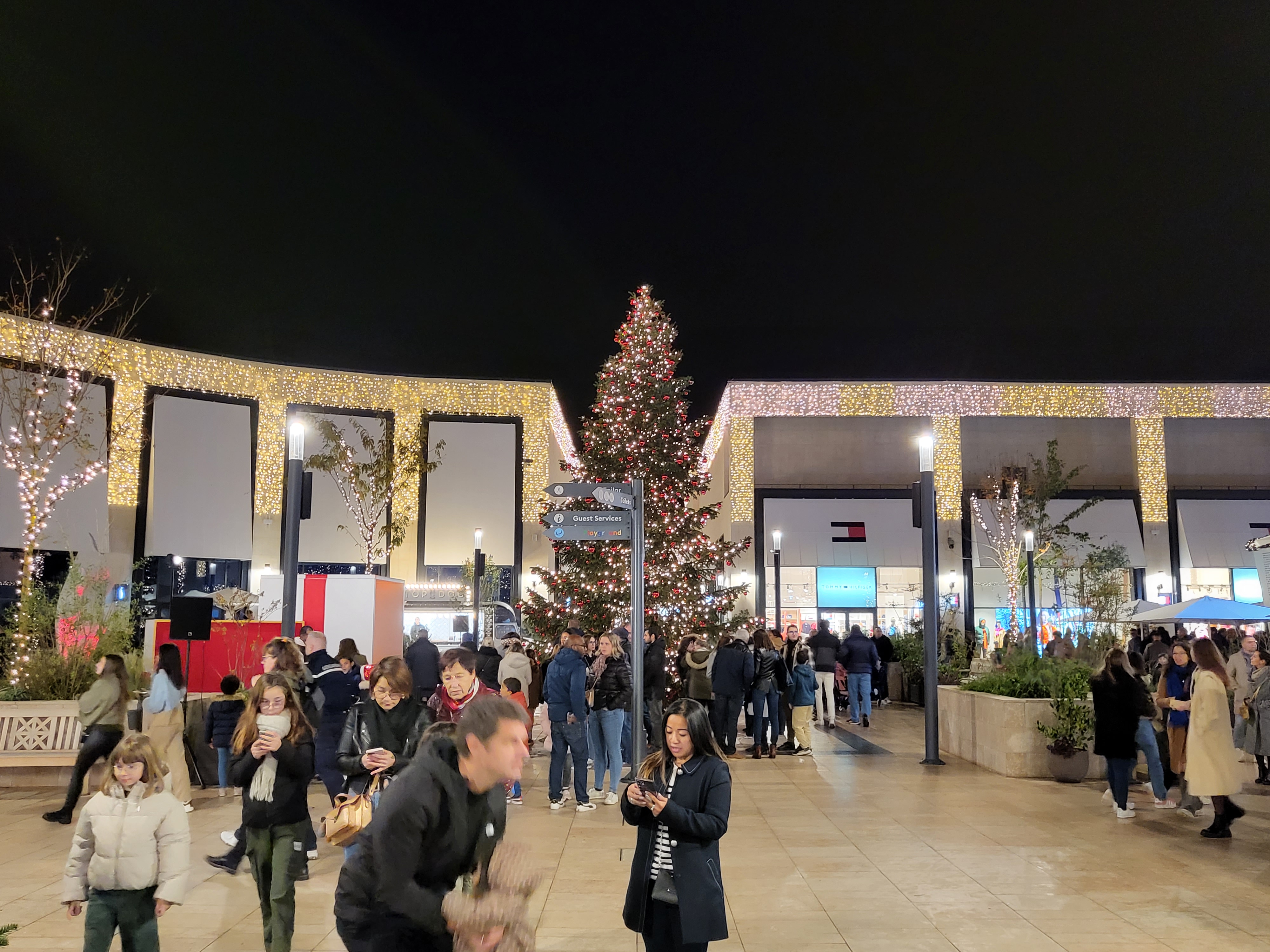 Soirée d'illuminations des fêtes de Noël magnifique avec animations et personnalités. (DJ, échassiers lumineux, feu d'artifice etc...) Très beau centre commercial avec différentes marques proposées. Bravo !