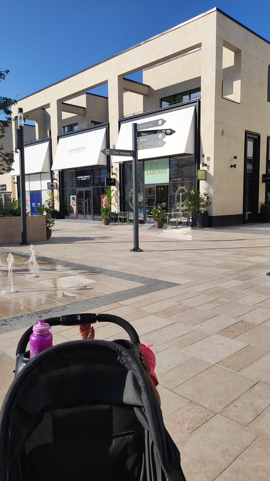 L'endroit est plutôt agréable, bon, c'est tout neuf, les magasins nombreux, mais chers, tellement chers, on se croirait presque avenue Montaigne à Paris.