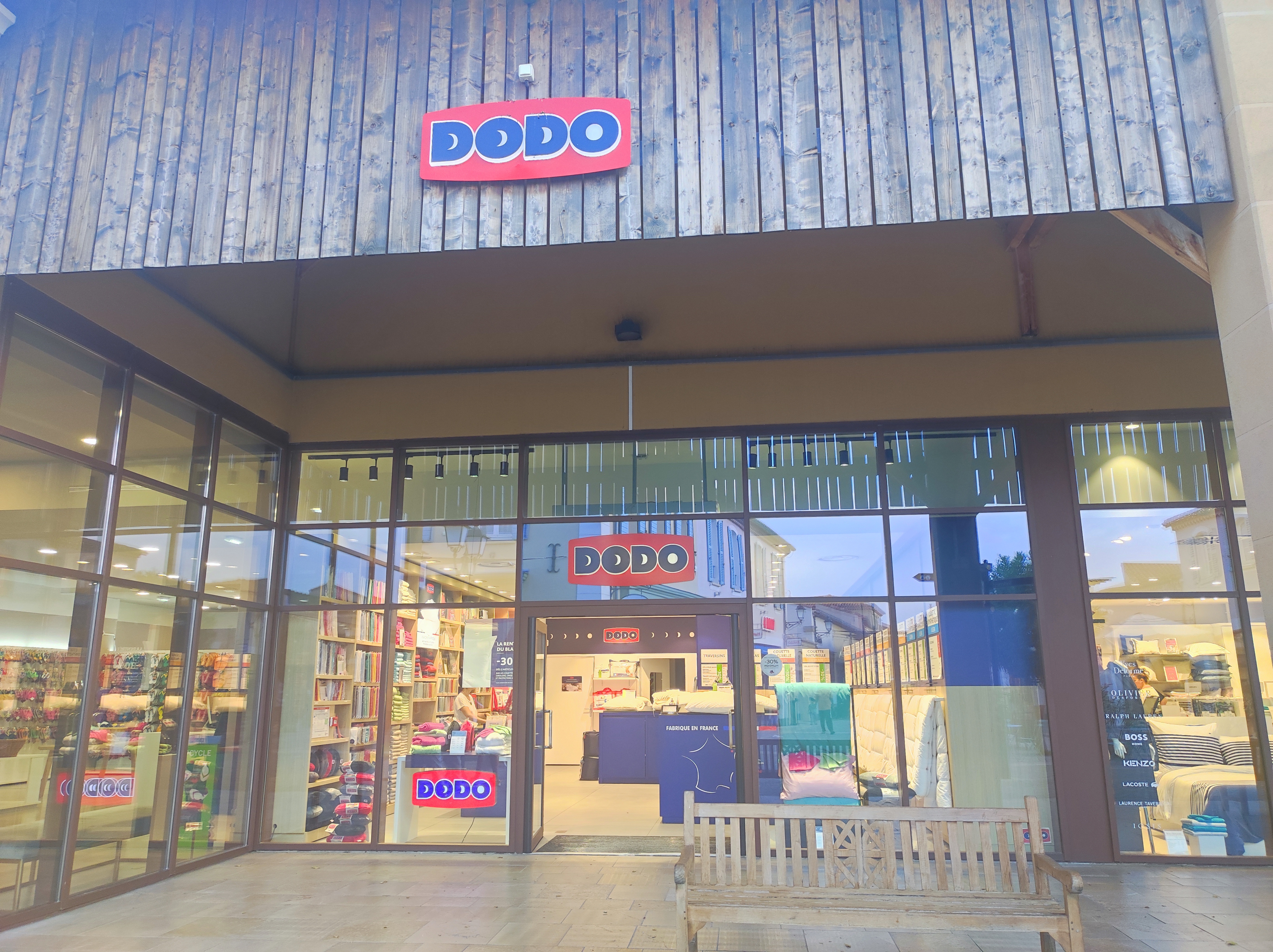 en premier,le parking ,les places sont larges ,le sens de circulation fluide ; le village est très bien conçu,les façades sont belles, et bien sur le principal,les magasins,sont magnifiques ; on y trouve de beaux produits à des prix corrects . C'est une ambiance zen.