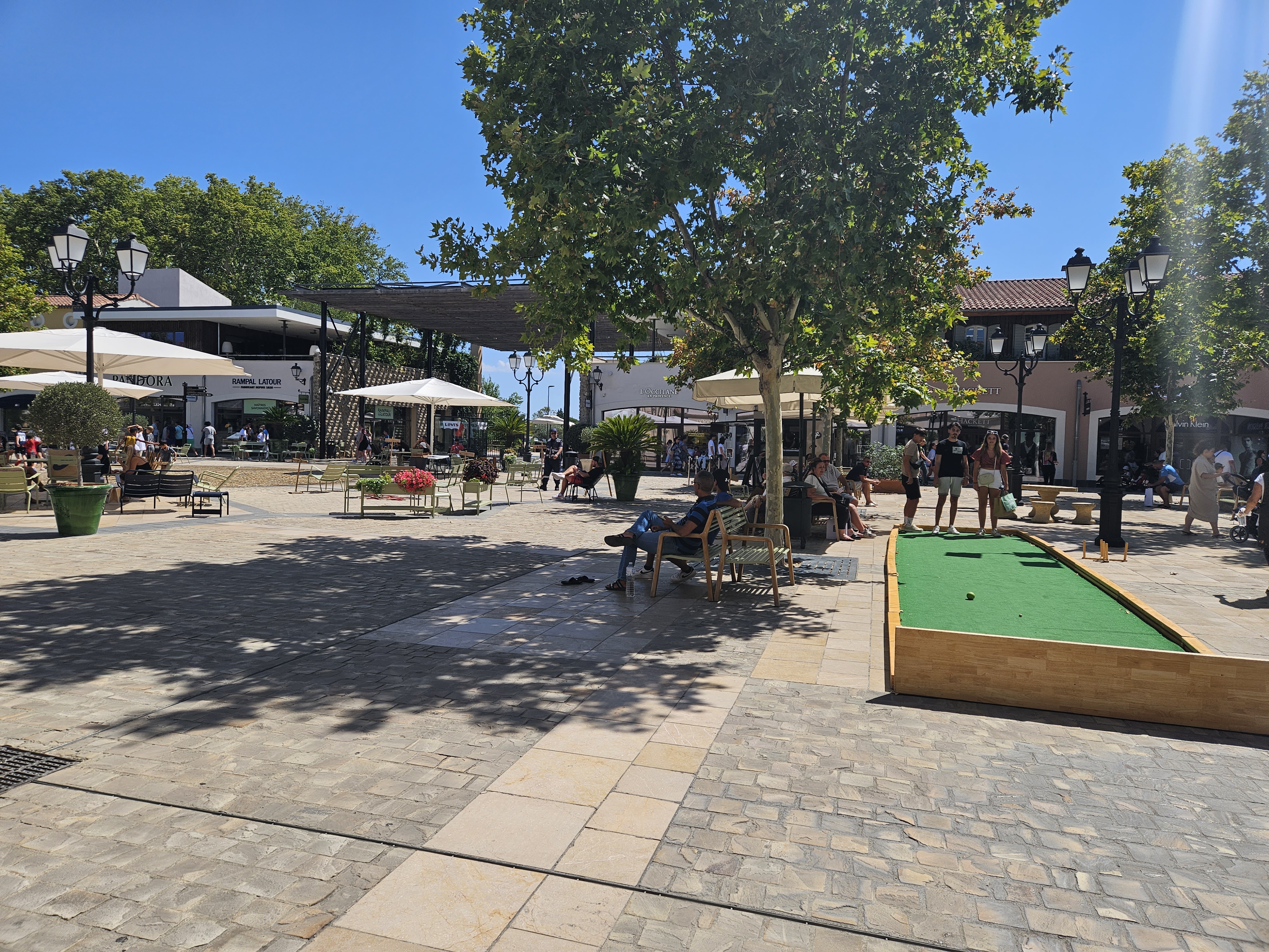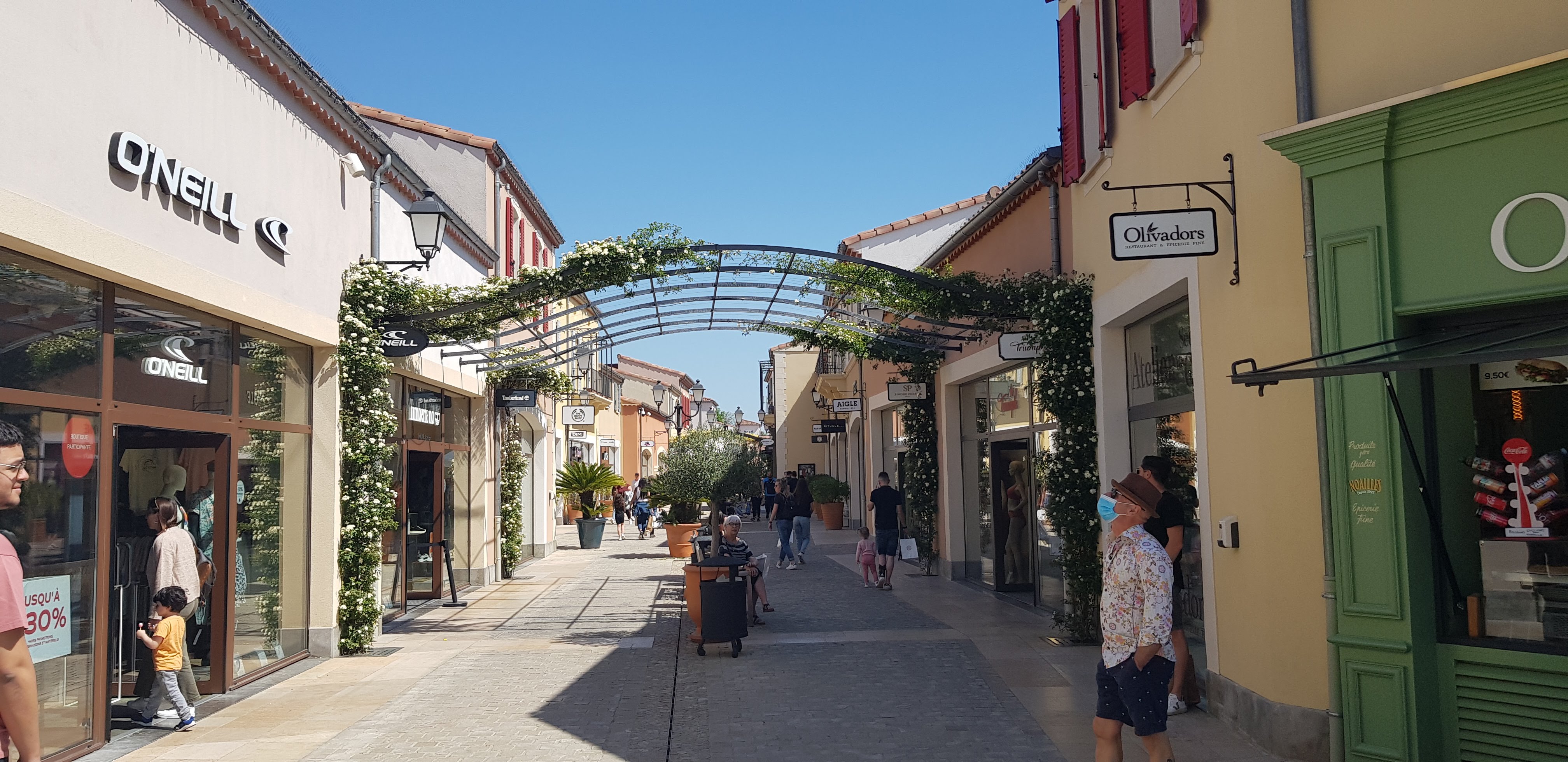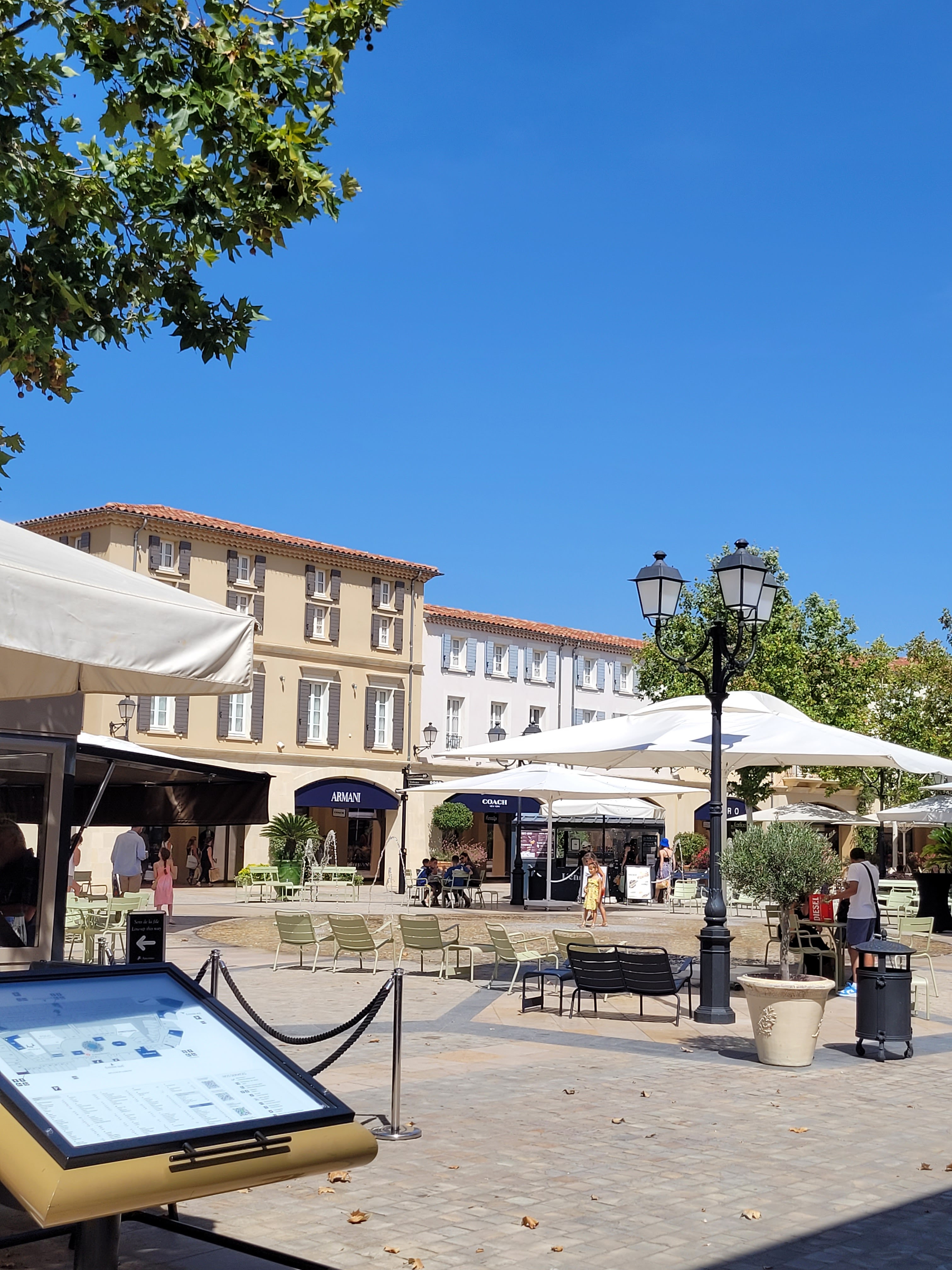 Un havre de paix pour faire du shopping, un centre commercial à l’image d’un petit village provençale, nous faisons notre shopping en flânant dans celui-ci. La décoration est soignée, beaucoup de verdure, l’ensemble du centre est très propre et est nettoyé toute la journée. Les règles sanitaires sont respectées, du gel hydroalcoolique est amplement à disposition. Rappelons que ce sont des boutiques outlet, donc à prix cassés sur les fins de collection. Les affaires sont nombreuses, alors n’hésitez plus et allez-y. Après une bonne matinée de shopping installez vous en terrasse, à l’ombre d’une tonnelle, à côté d’une fontaine pour reprendre des forces. Un moment de shopping très agréable