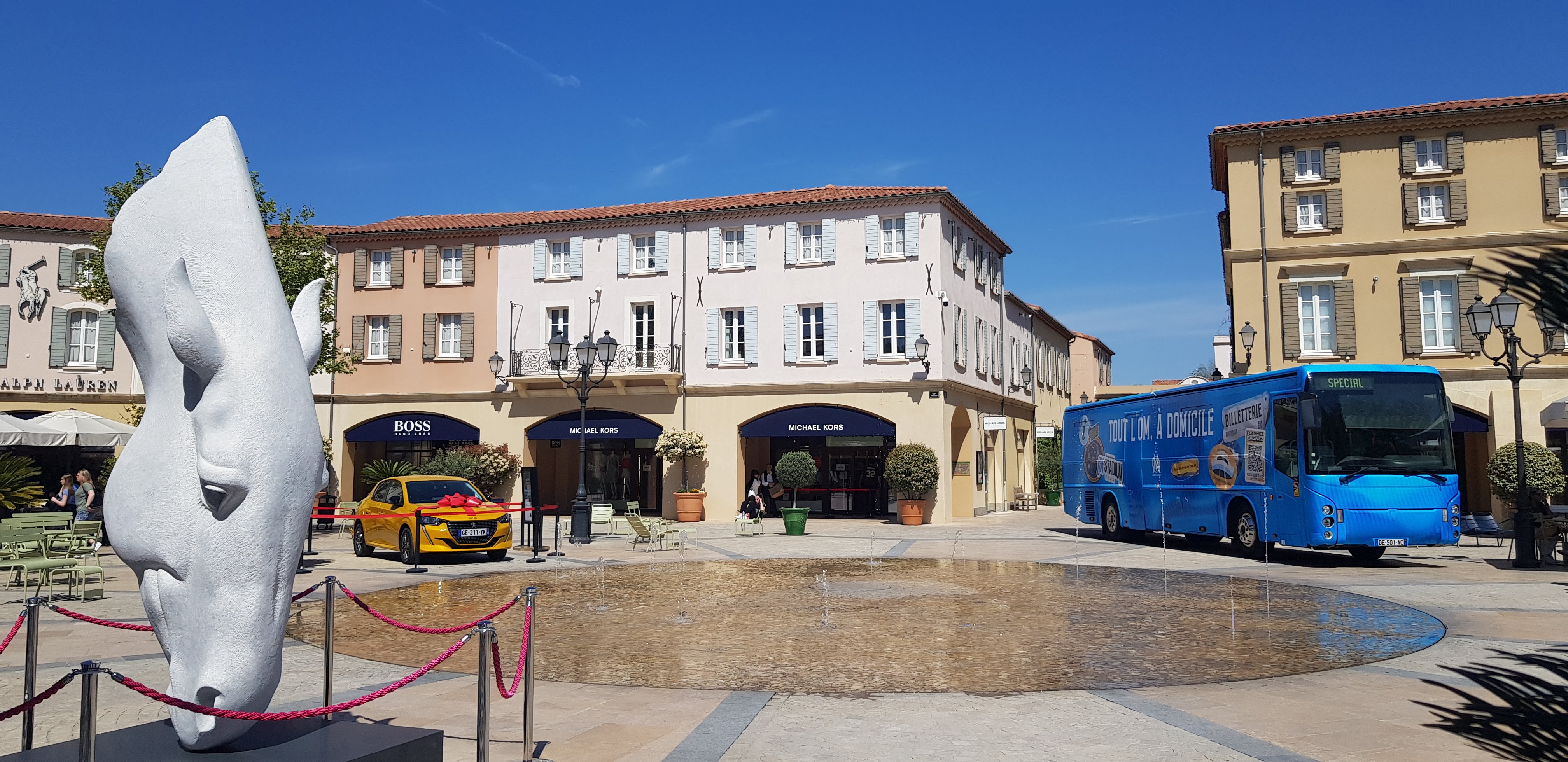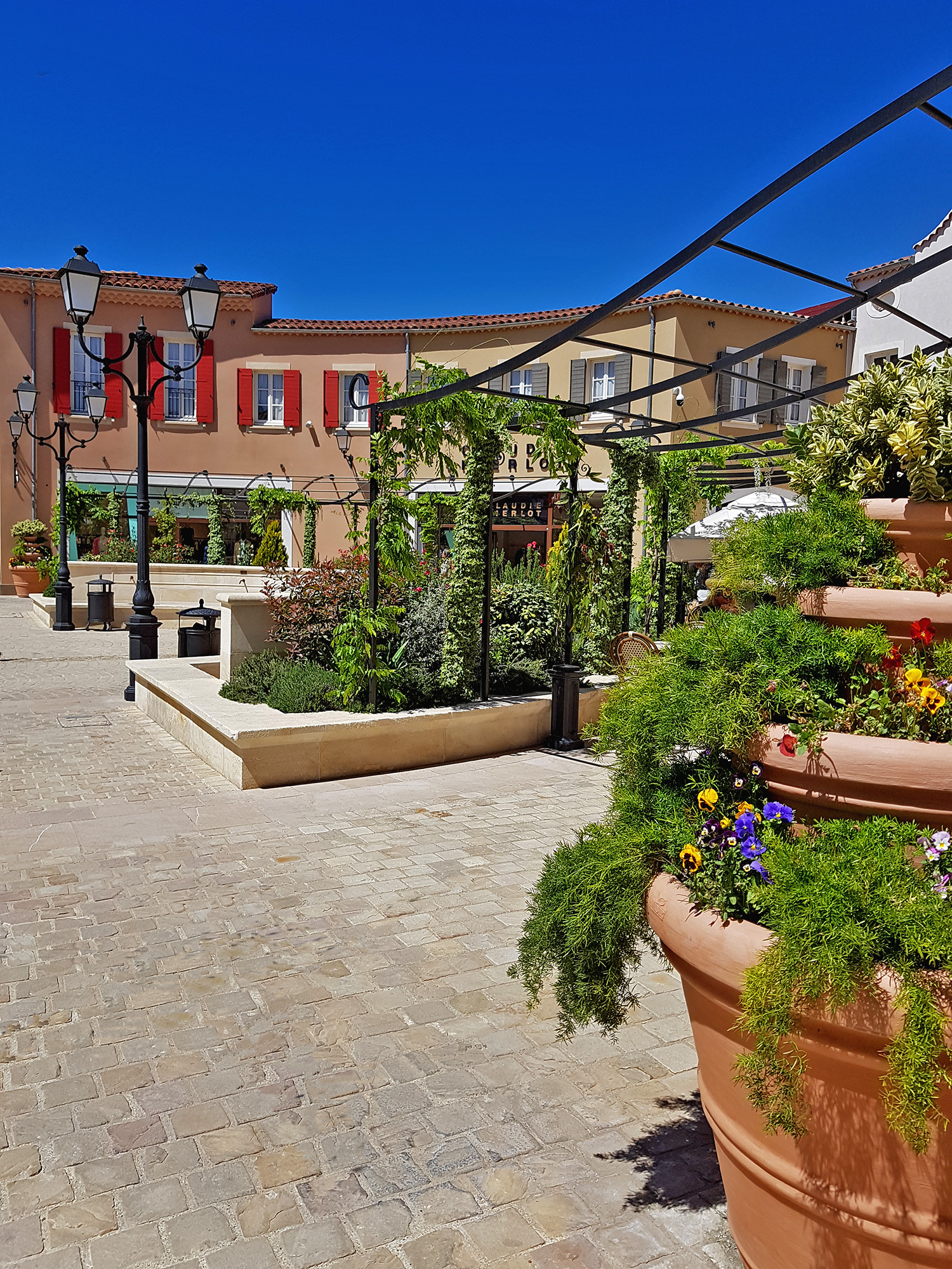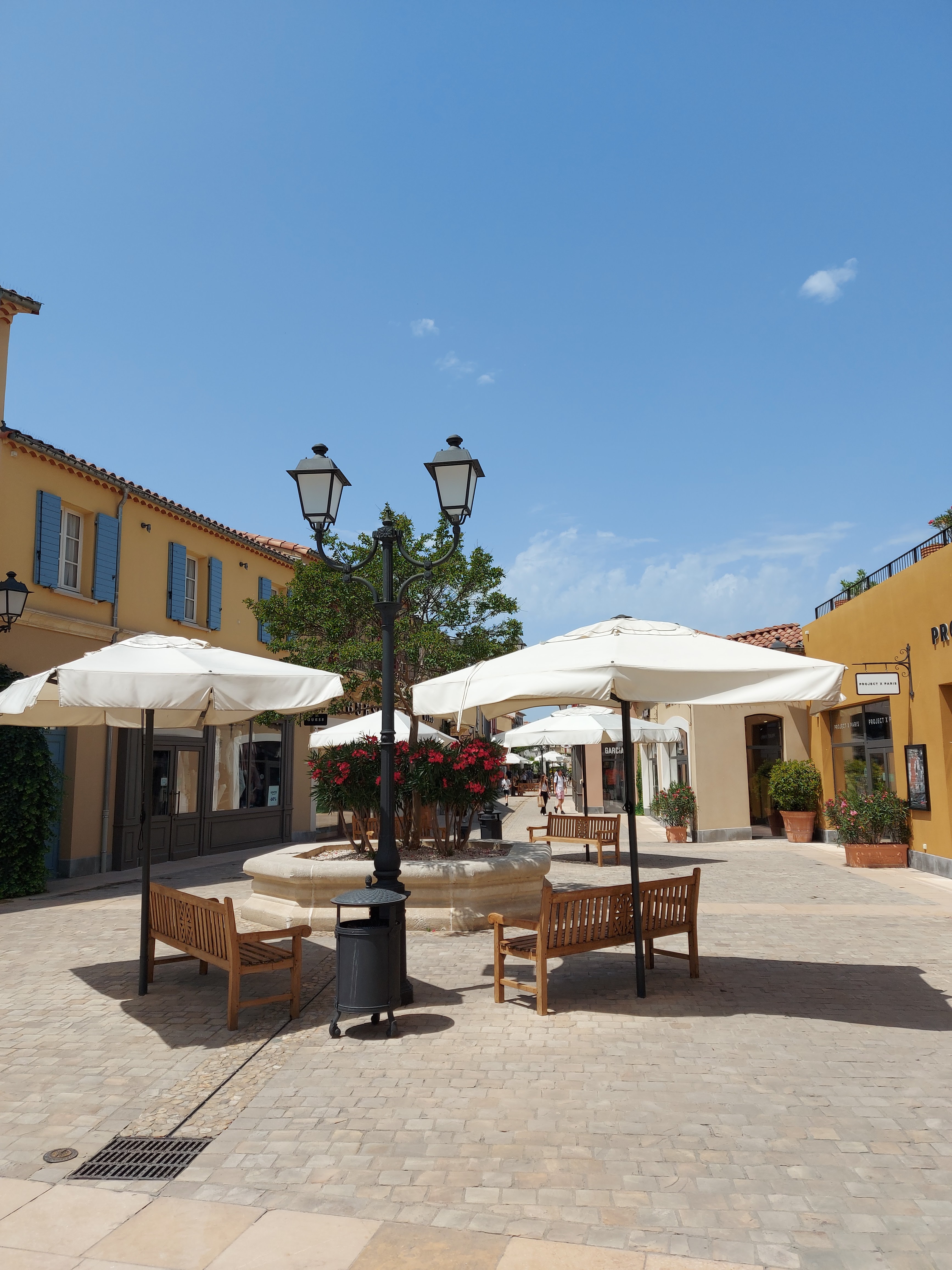Un havre de paix pour faire du shopping, un centre commercial à l’image d’un petit village provençale, nous faisons notre shopping en flânant dans celui-ci. La décoration est soignée, beaucoup de verdure, l’ensemble du centre est très propre et est nettoyé toute la journée. Les règles sanitaires sont respectées, du gel hydroalcoolique est amplement à disposition. Rappelons que ce sont des boutiques outlet, donc à prix cassés sur les fins de collection. Les affaires sont nombreuses, alors n’hésitez plus et allez-y. Après une bonne matinée de shopping installez vous en terrasse, à l’ombre d’une tonnelle, à côté d’une fontaine pour reprendre des forces. Un moment de shopping très agréable
