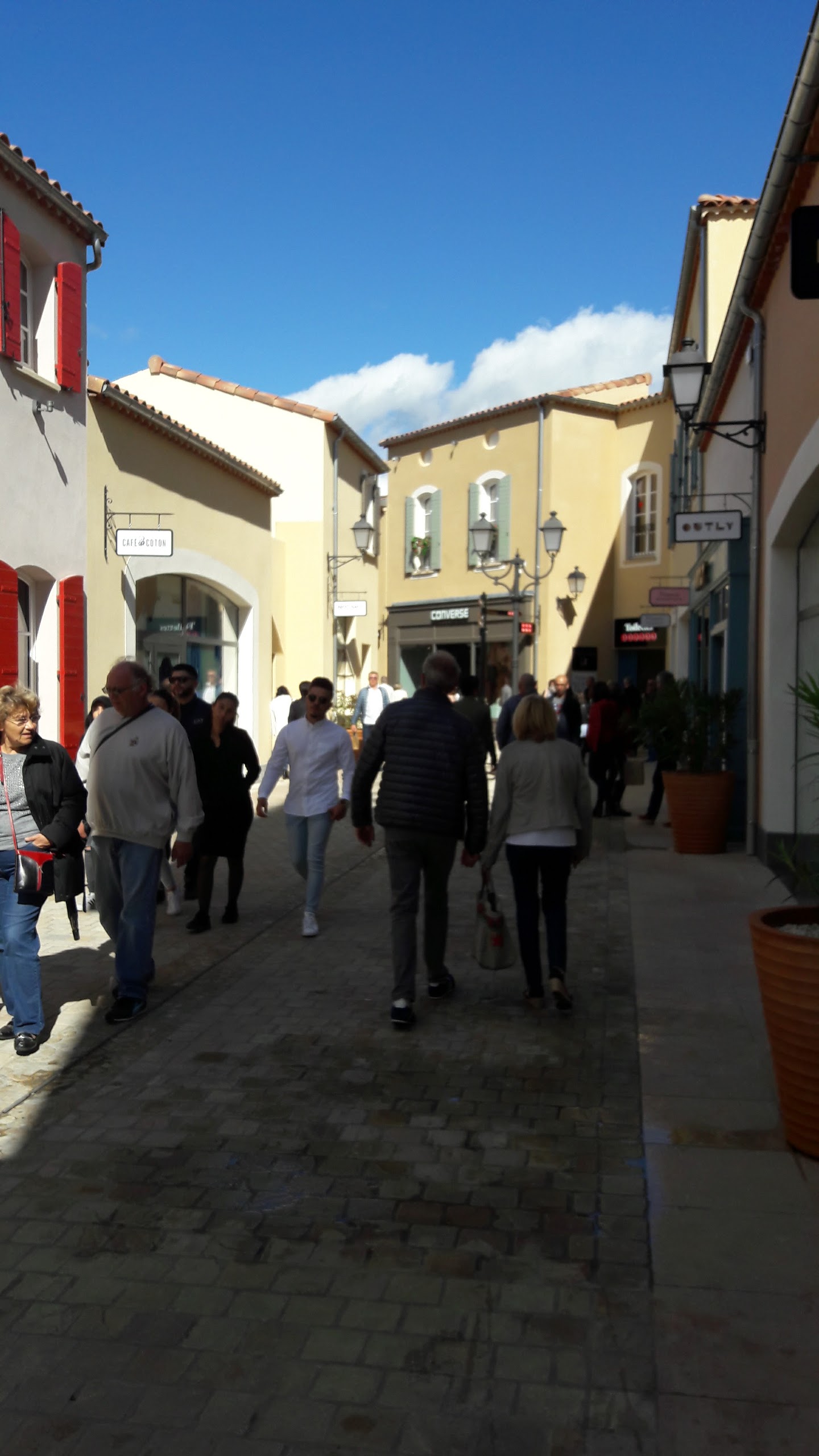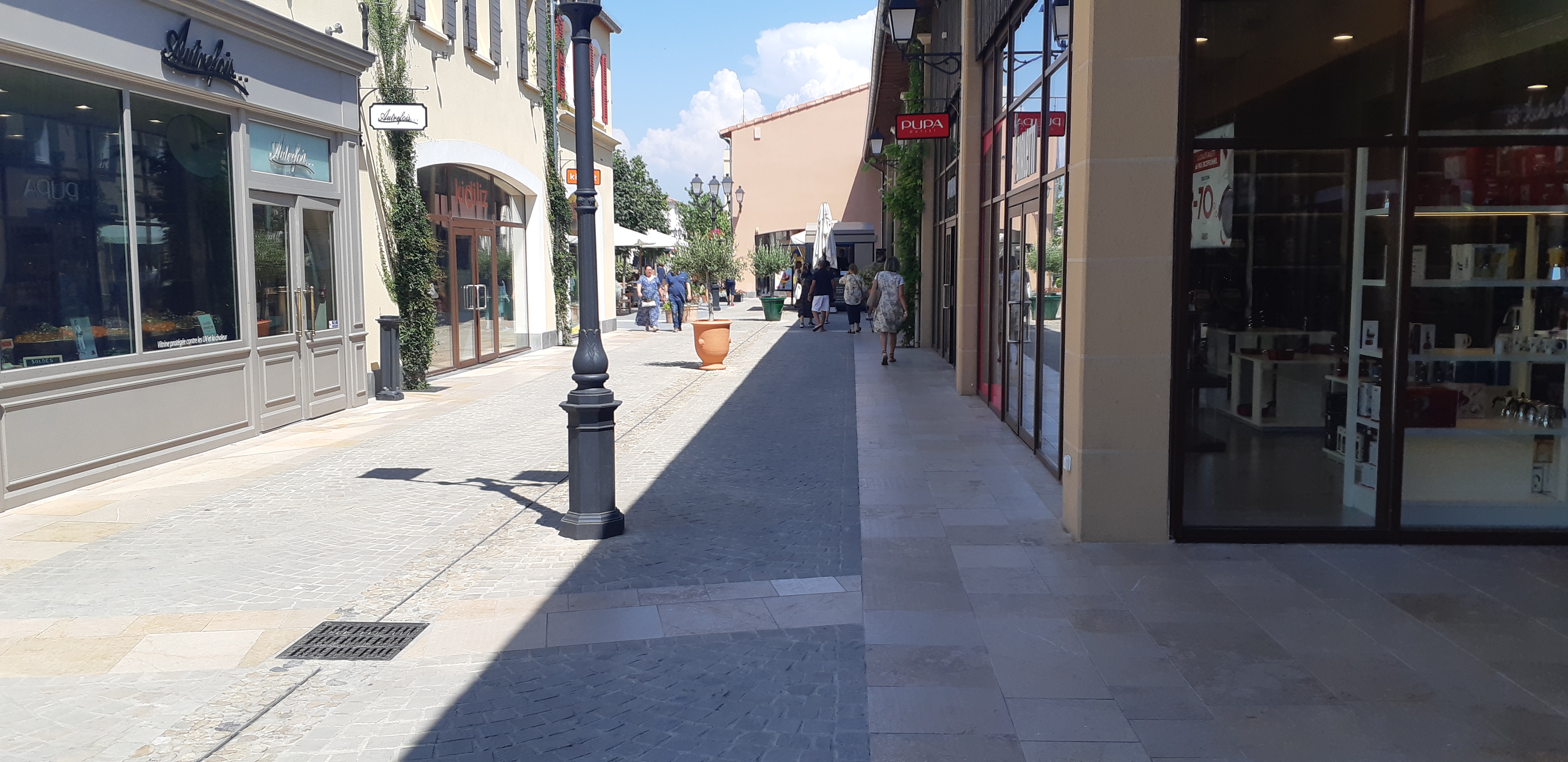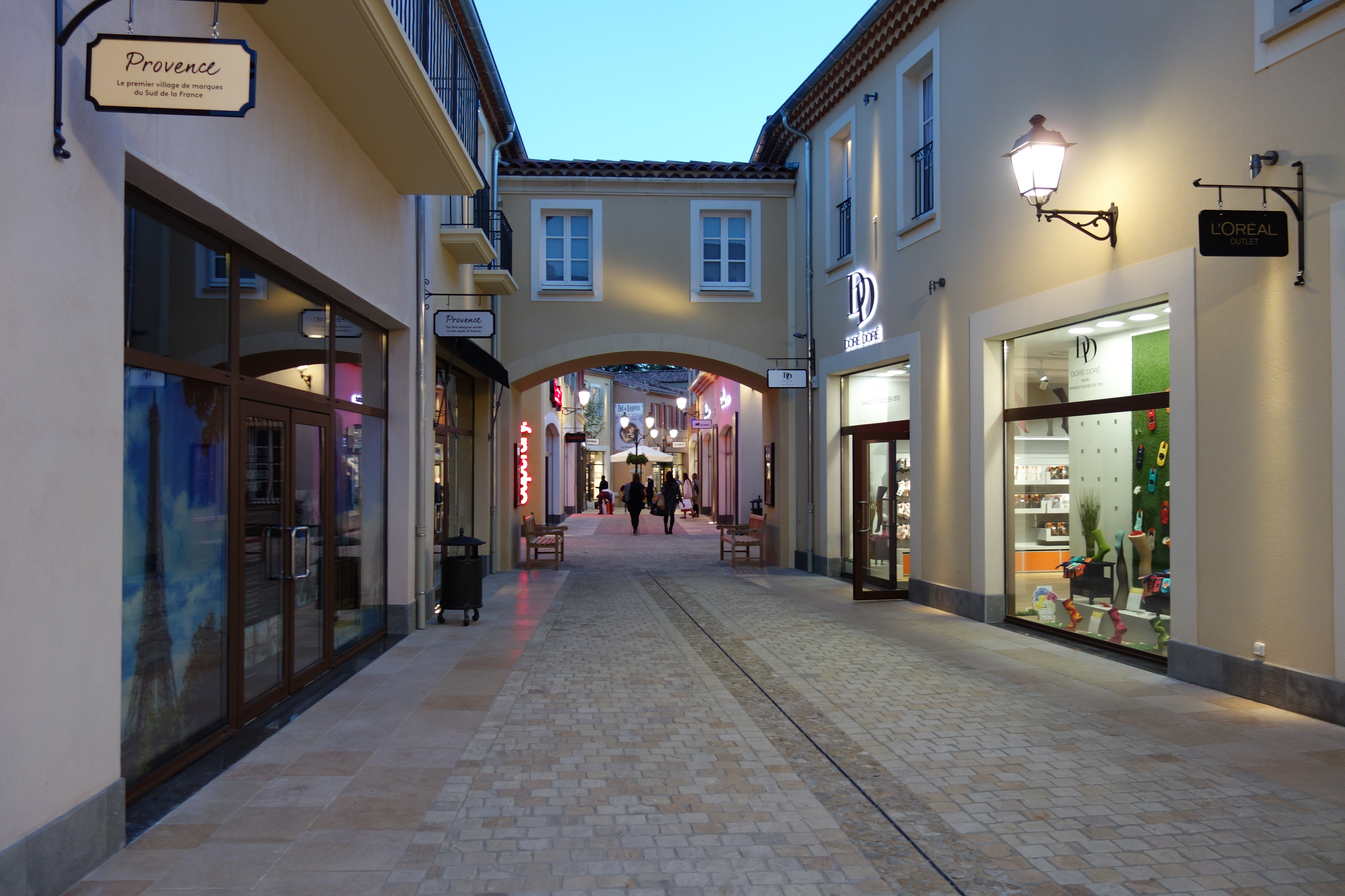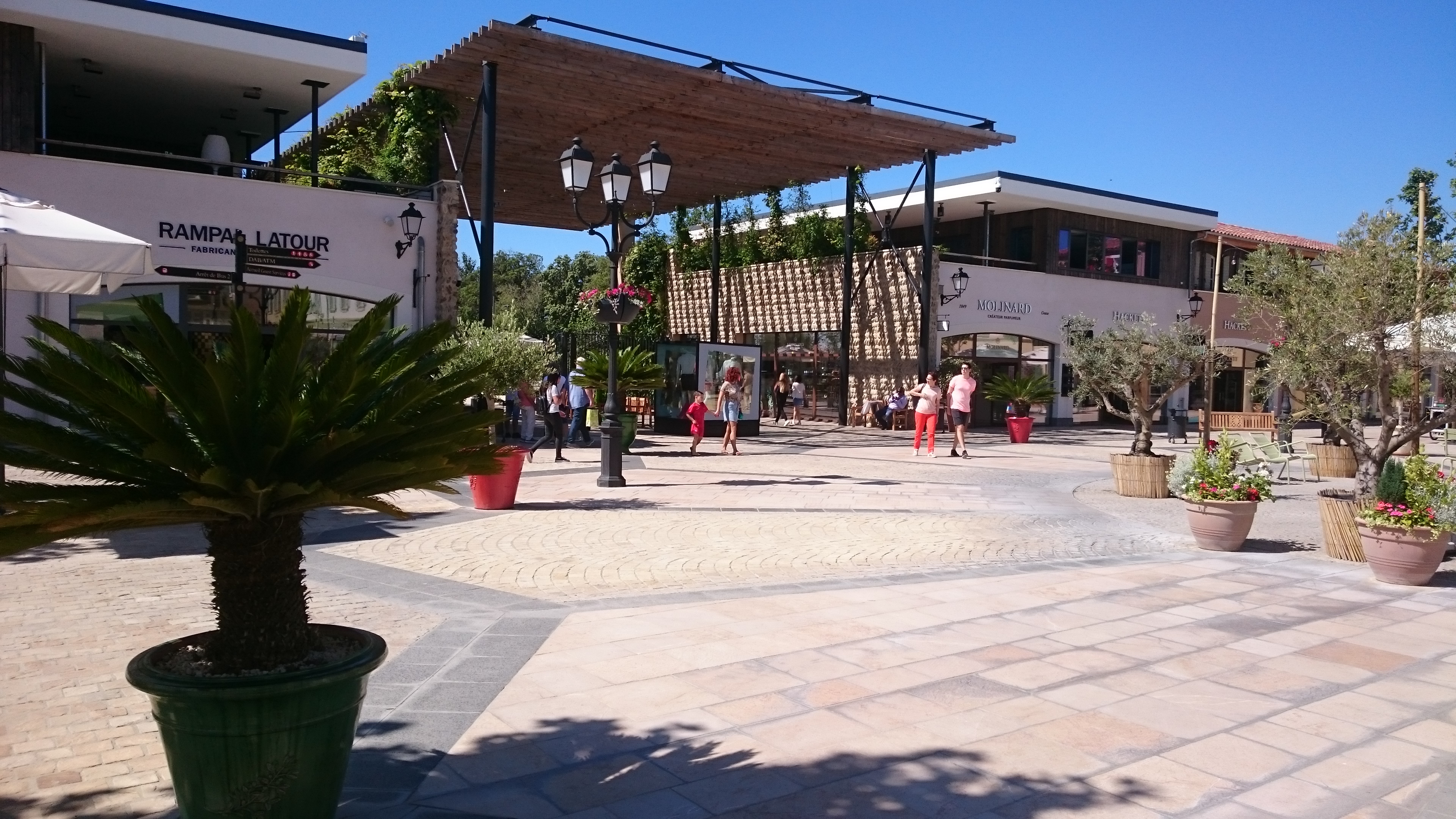 Le centre commercial est très beau, on a vraiment le sentiment d’être dans un vieux village provençal. Les boutiques présentes sont de belles boutiques, cependant certaines de par leur taille, ne proposent qu’un choix limité de produit. Contrairement à d’autres Outlet. Vous trouverez aussi de quoi manger et vous restaurer.