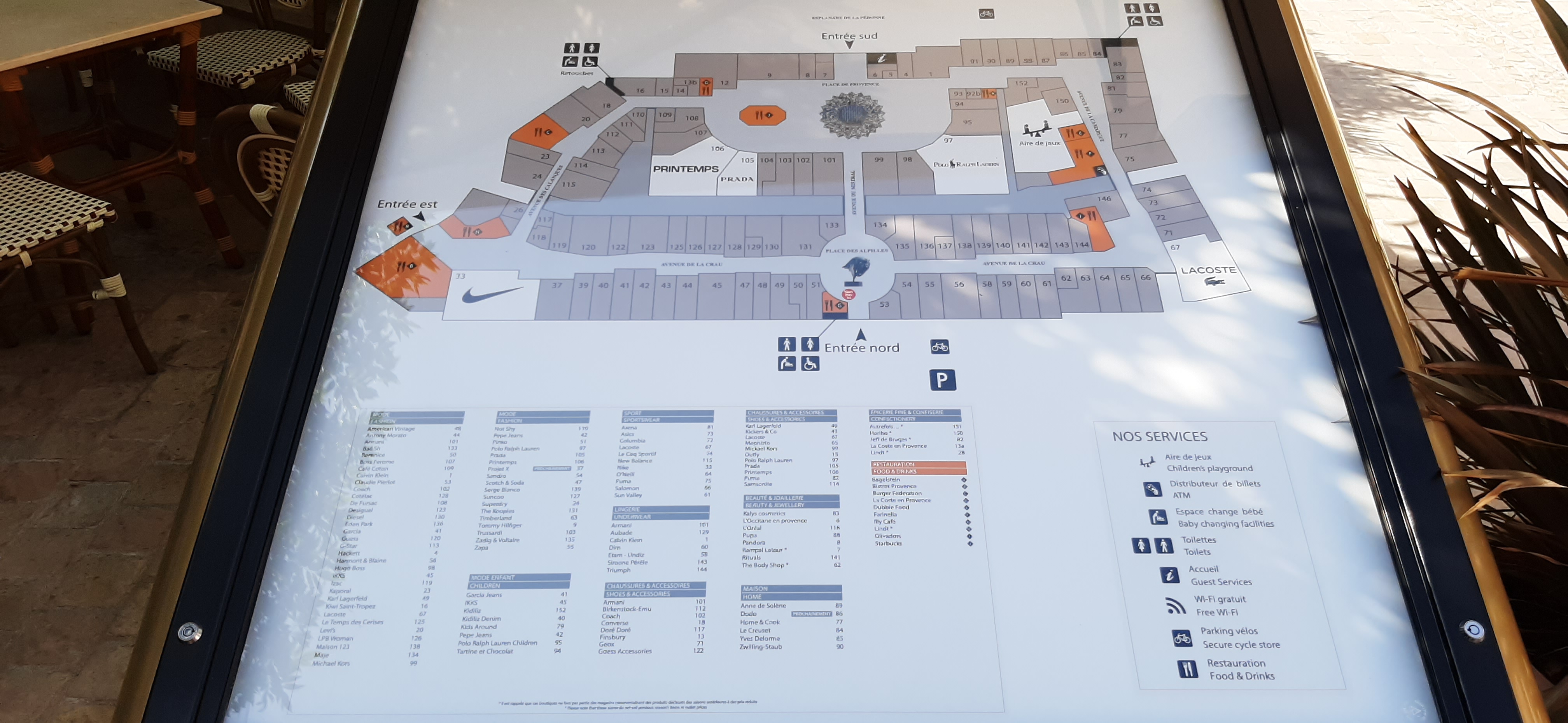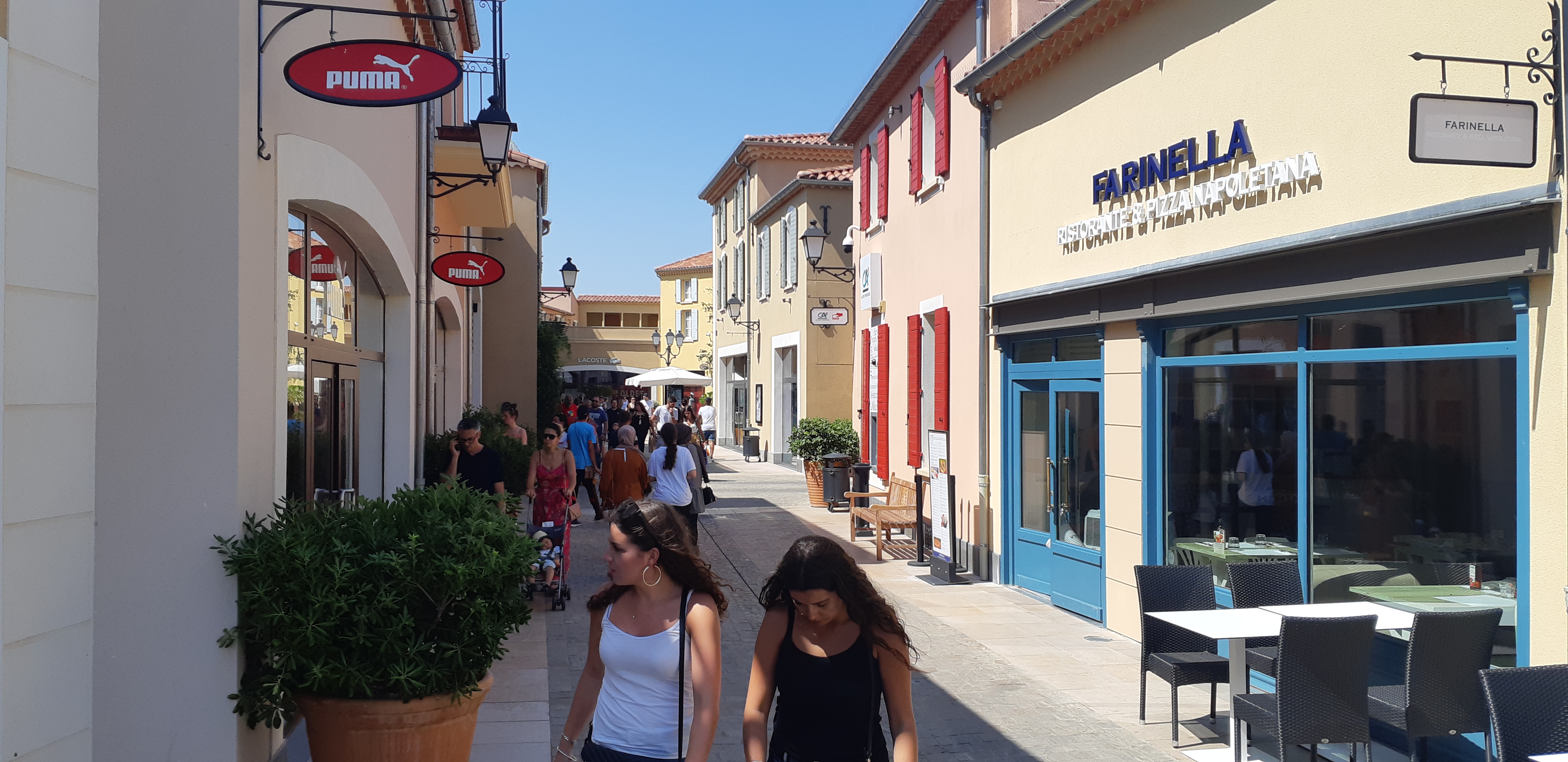Marques variées et de qualité, très bon choix du thème avec la reproduction d'un village provençal. Magasins de vêtements et chaussures ainsi qu'un magasin d'électroménager et une boutique de produits alimentaires typiquement provençaux. Lieu agréable pour du shopping avec l'avantage d'avoir un parking gratuit. Des espaces restaurations sont disponibles ainsi que plusieurs toilettes publiques.