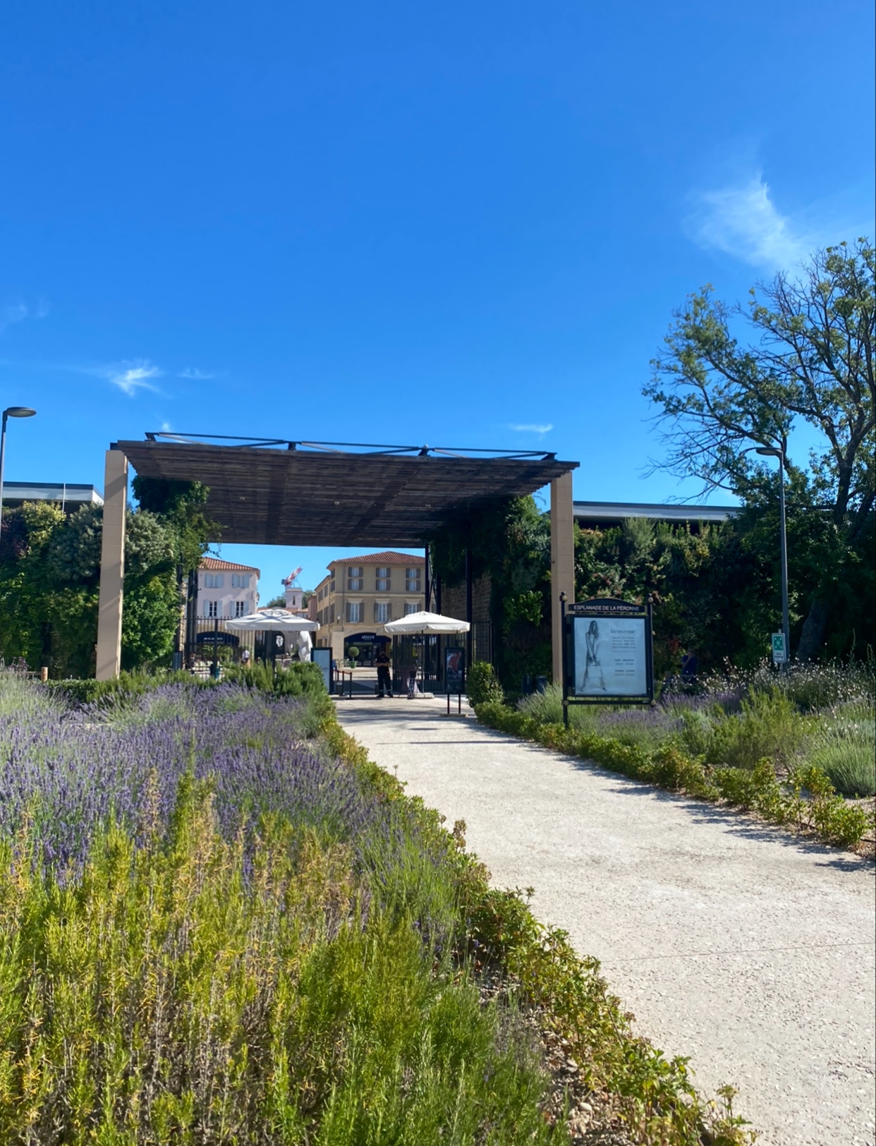 Ils ont recréé un village Provençal, on n se croirait pas dans une ZA. C'est génial et propre. Il y a de quoi se restaurer et des WC publics. Vraiment très bien fait.