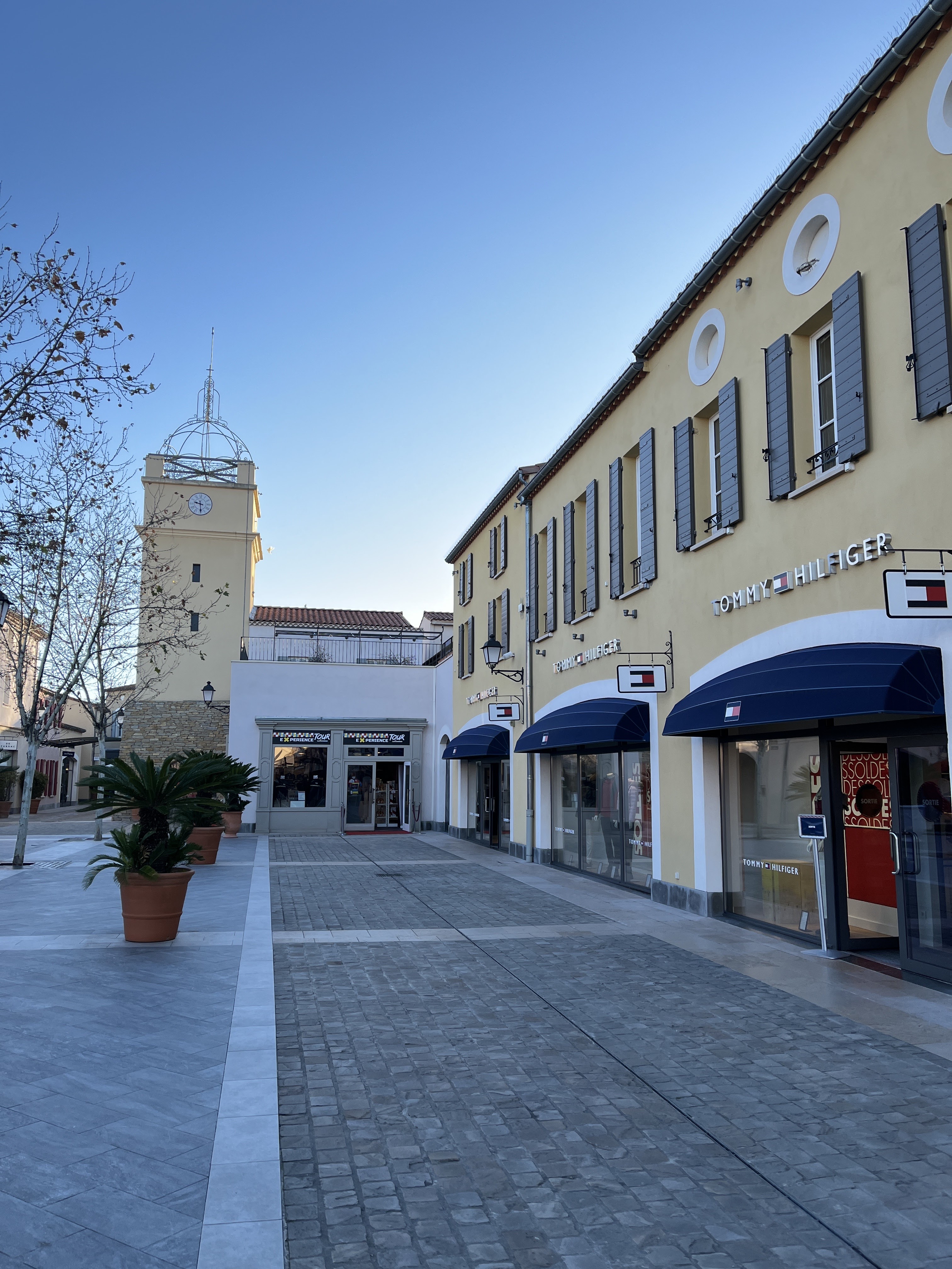Le village est très bien fait, on dirait vraiment une ville provençale ! En revanche les marquent mettent toutes les mêmes teeshirt, les mêmes sweat-shirt, les mêmes pulls en changeant juste le logo… Donc c’est moins cher mais ce sont les habits « bas de gammes » de chacune des marques.