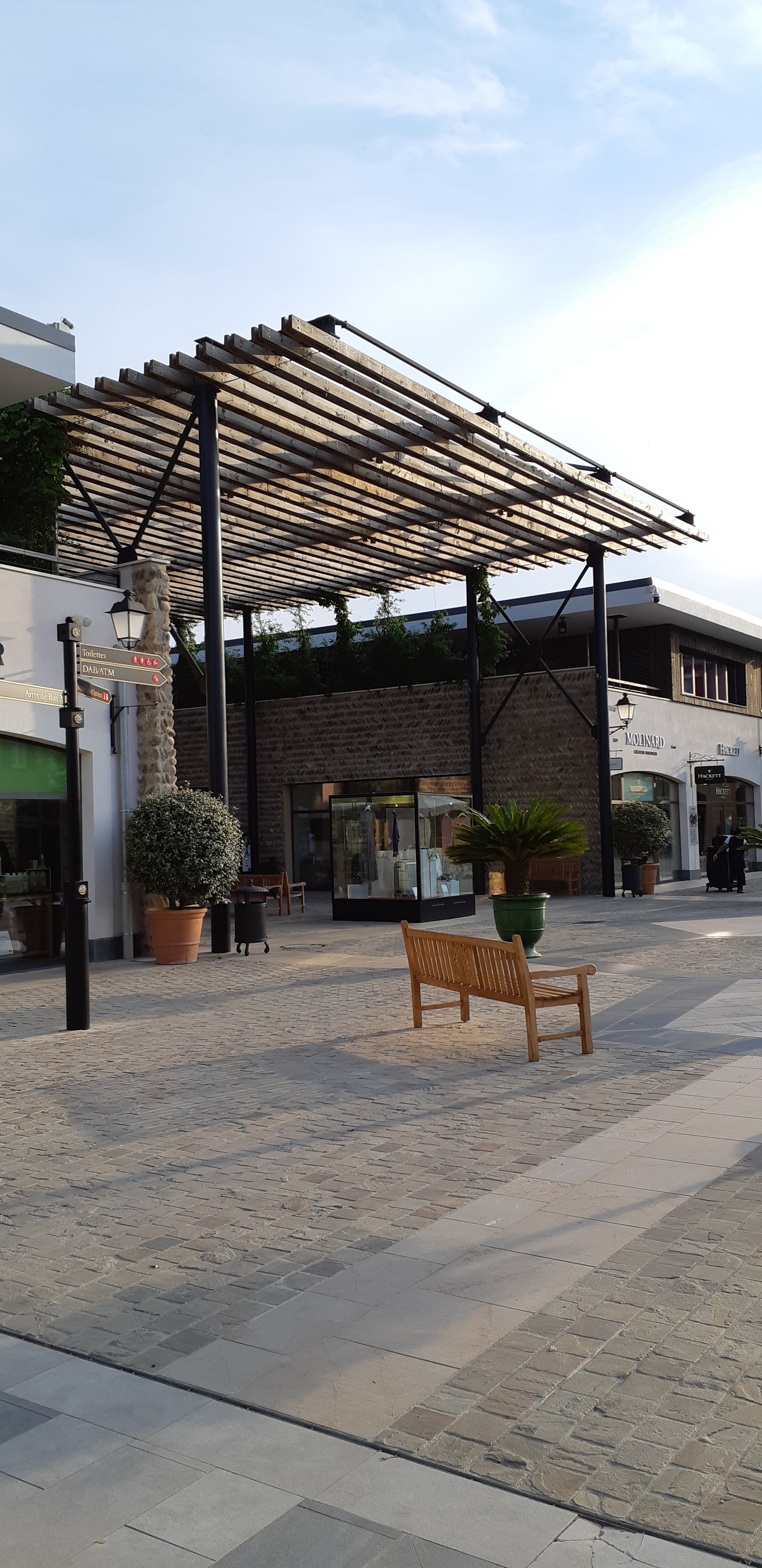 Une belle découverte en famille. Le lieu a été construit dans le respect de l'architecture local et c'est très plaisant de s'y promener. Tout à été pensé pour un confort optimal pour tous. Propre et agréable. Les magasins présents sont de grosses enseignes et nécessite pour la plupart de gros budgets.