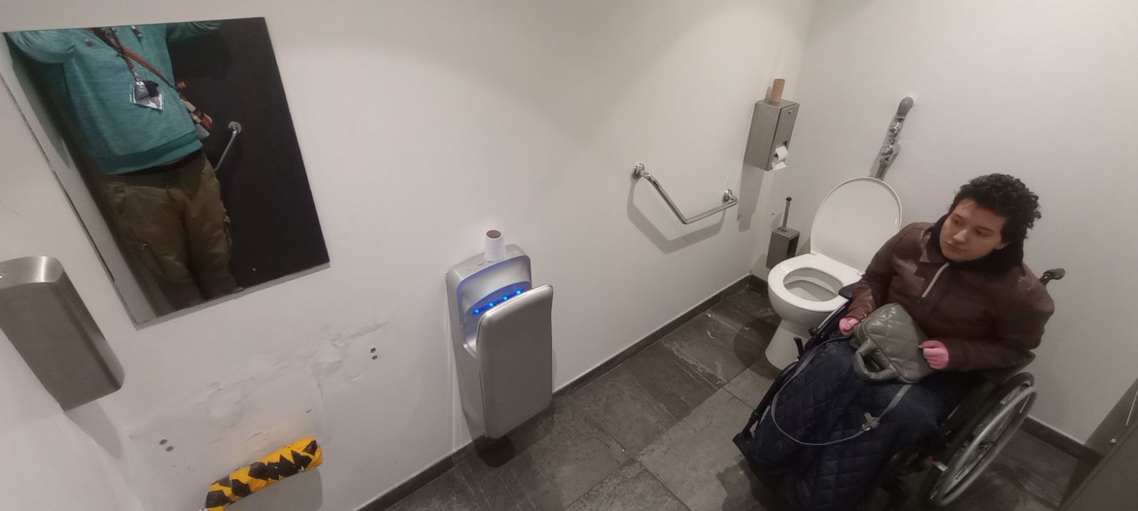 Toilette handicap non accessible, preuve a l'appui. Il n'y a pas de lavabo donc pas de raccord a l'eau dans le toilette. Cela est indigne d'une zone commercial qui ce veux accessible.
