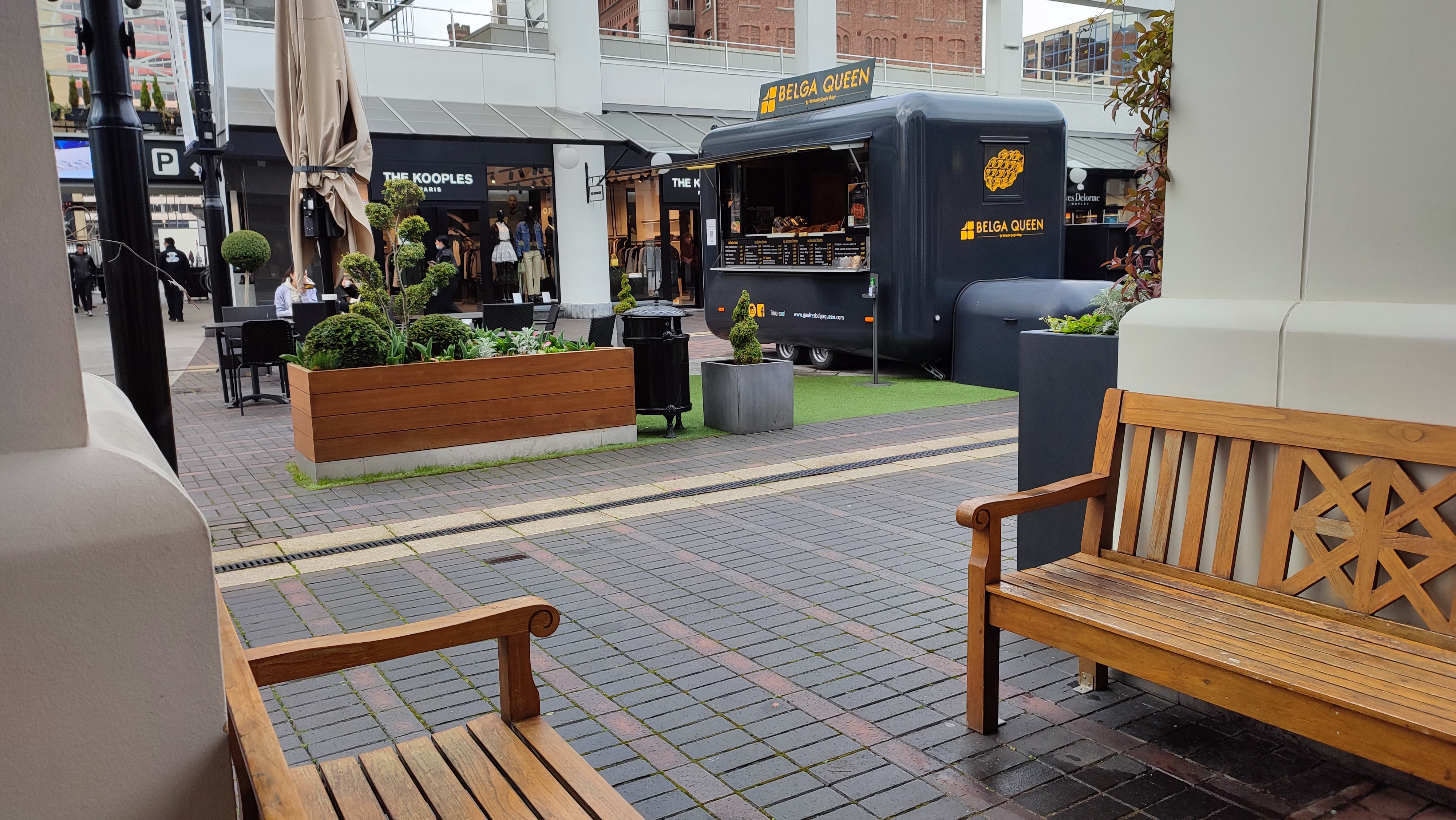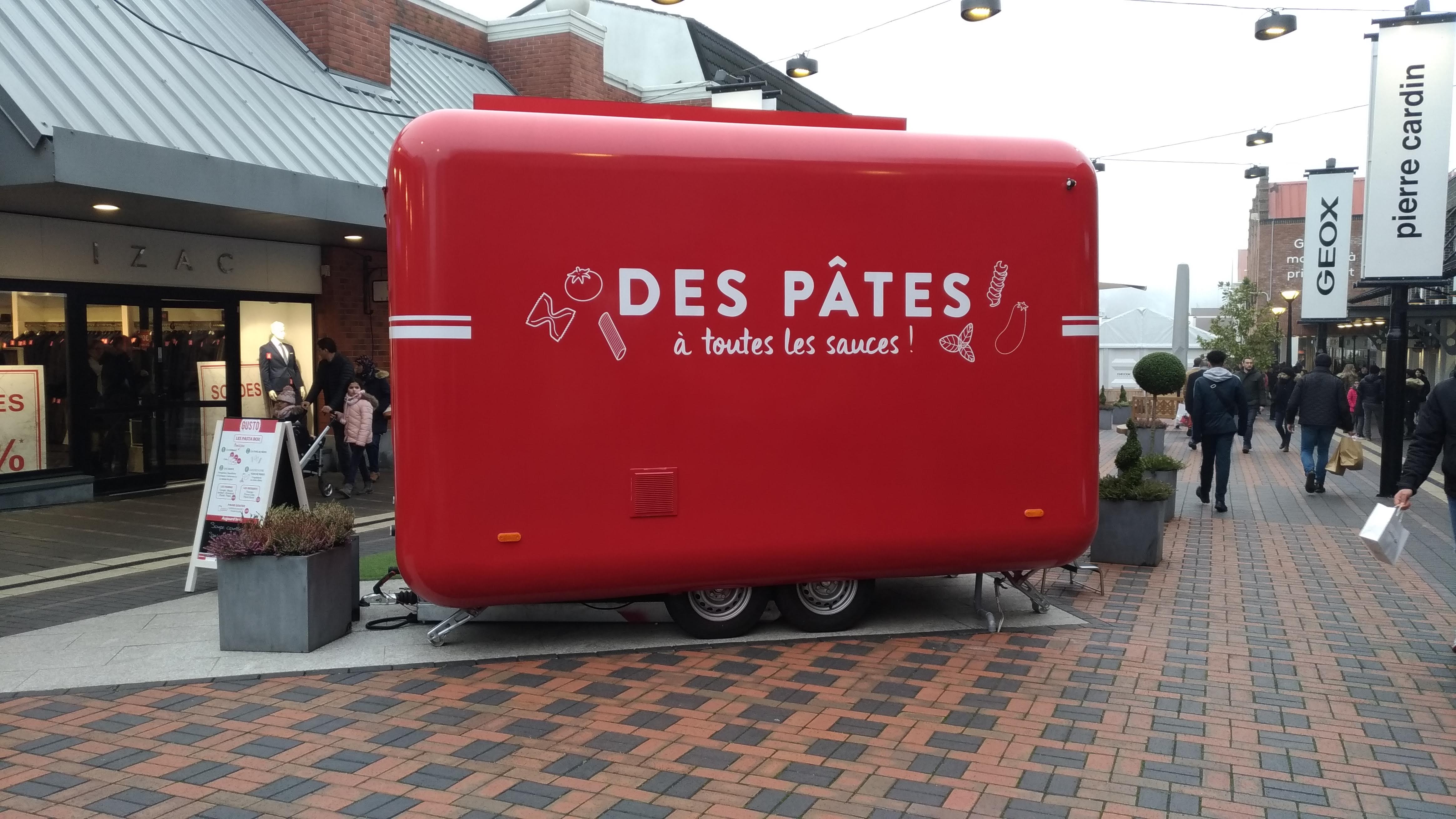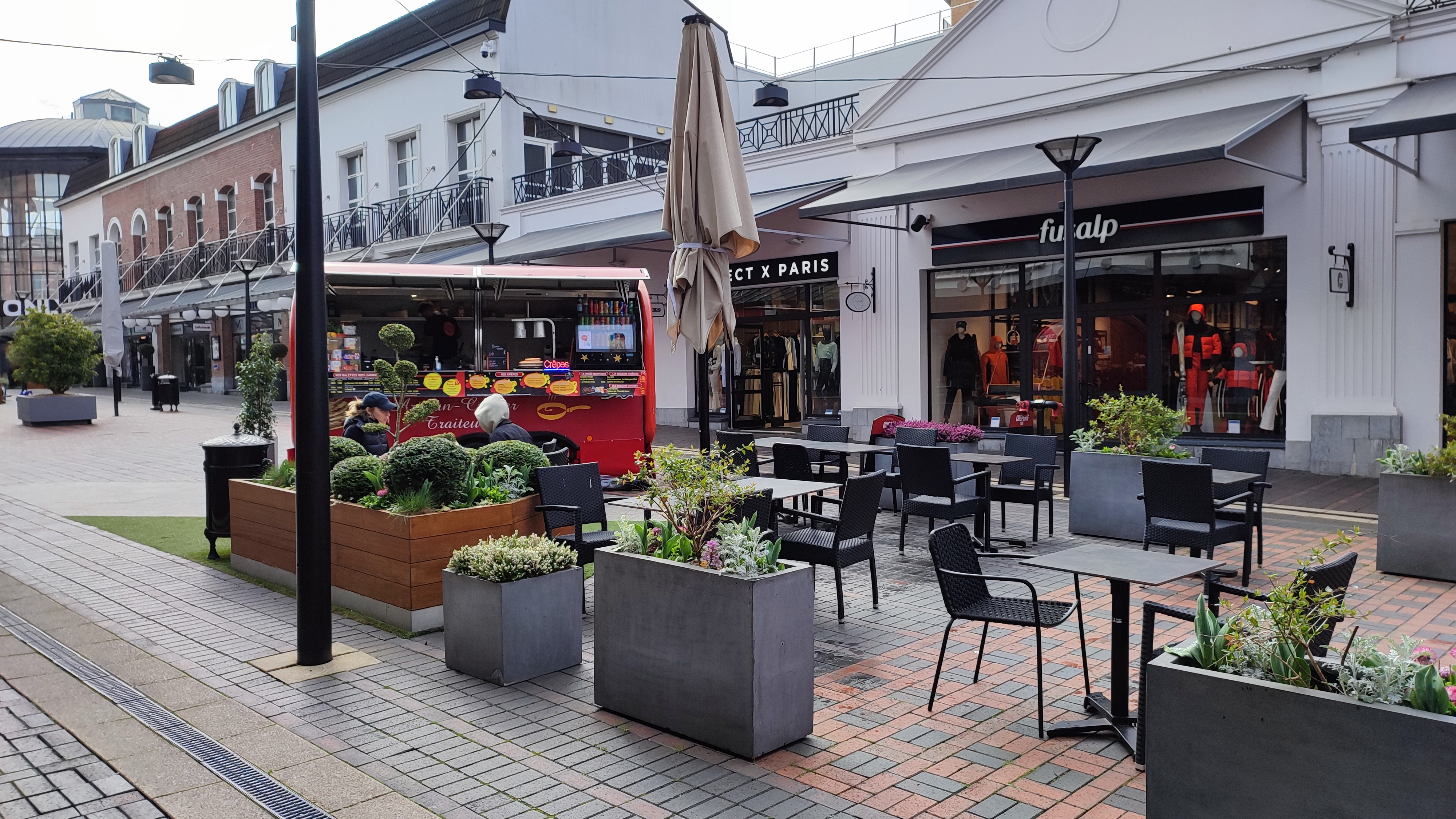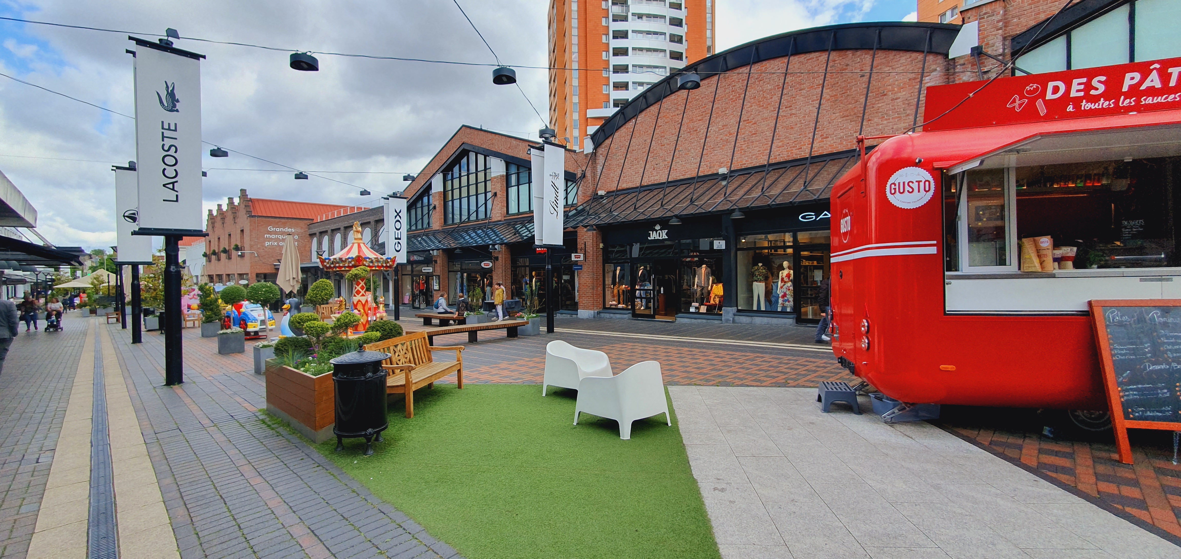 Un lieu avec des grandes marques outlet qui propose des prix intéressants et de la restauration en food truck